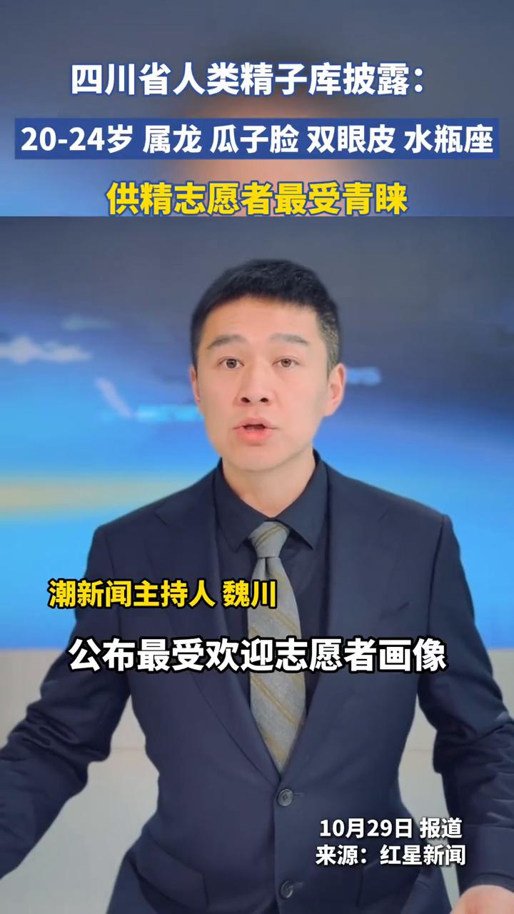 四川省人类精子库披露:20-24岁属龙、瓜子脸、双眼皮、水瓶座供精志愿者最受青睐。 四川省人类精子库公布最受欢迎志愿者画像,20-24岁属龙、瓜子脸、双眼皮、水瓶座的男性成了香饽饽。 据红星新闻报道,四川大学华西第二医院"供精匹配"平台的大数据显示,最受欢迎的志愿者年龄集中在20-24岁,身高175-179公分,本科学历,外形是瓜子脸、双眼皮、高直鼻梁,属相首选龙,星座则以水瓶座最热门。 与此同时,一组数据也值得关注,我国不孕不育率已达15%左右,更严峻的是男性精子总数正加速下降,从上世纪70年代到2010年,这一数值已下降60%。