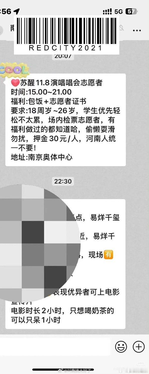 疑似苏醒演唱会志愿者招募有不要河南人的条件,相关信息曝光后,引发了外界对招募合理性的讨论,大家希望了解背后原因。疑似苏醒演唱会志愿者不要河南人曝苏醒演唱会志愿者招募条件