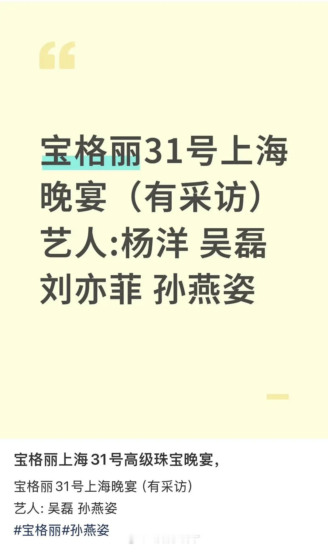 宝格丽到场人员:杨洋、吴磊、刘亦菲、孙燕姿