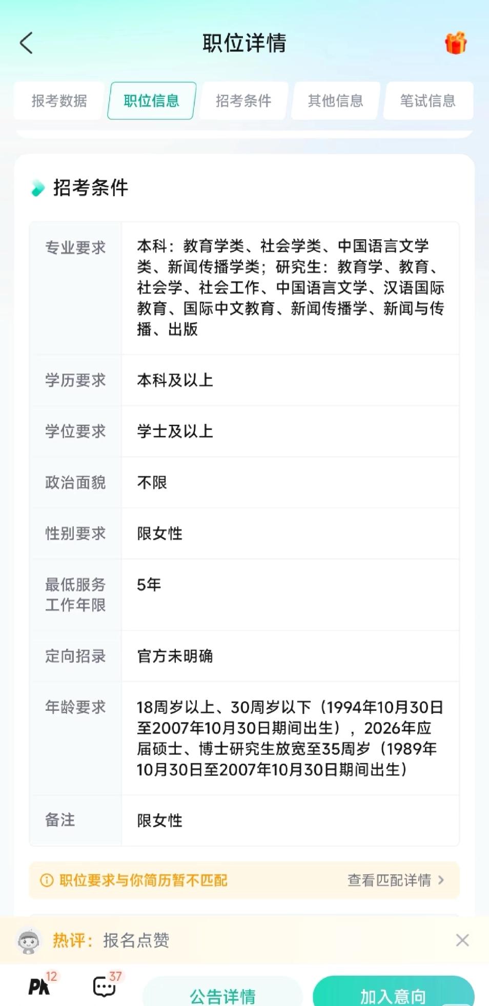 去年招5个,今年招6个,去年的全跑了? 敢报这个岗的姐妹都是勇士啊啊! 感觉得在jc学院之类的锻炼过的才有胆量吧,学文科的小姐妹会报这个吗?