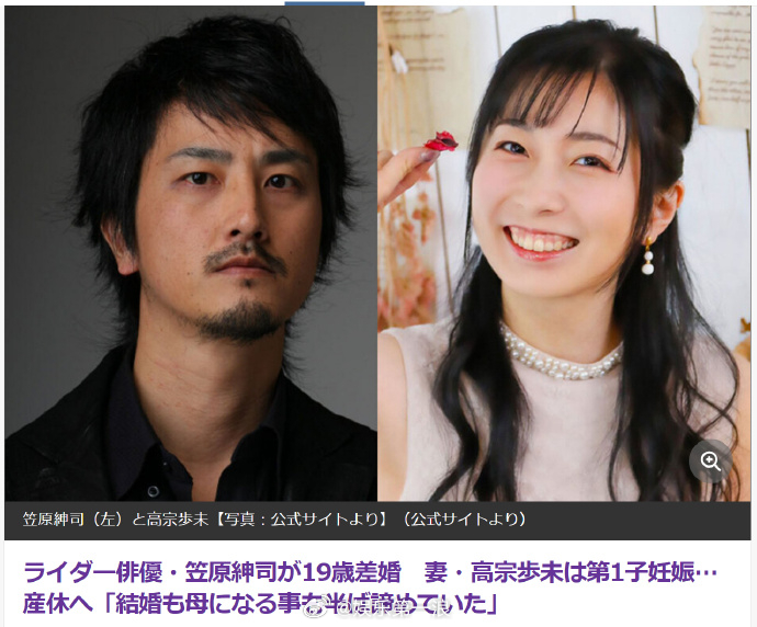 笠原绅司高宗步未结婚得子笠原绅司高宗步未结婚《假面骑士极狐》鞍马光圣的演员 笠原绅司(51岁)与女演员 高宗步未(32岁)宣布结婚、女方已怀上第一胎 。