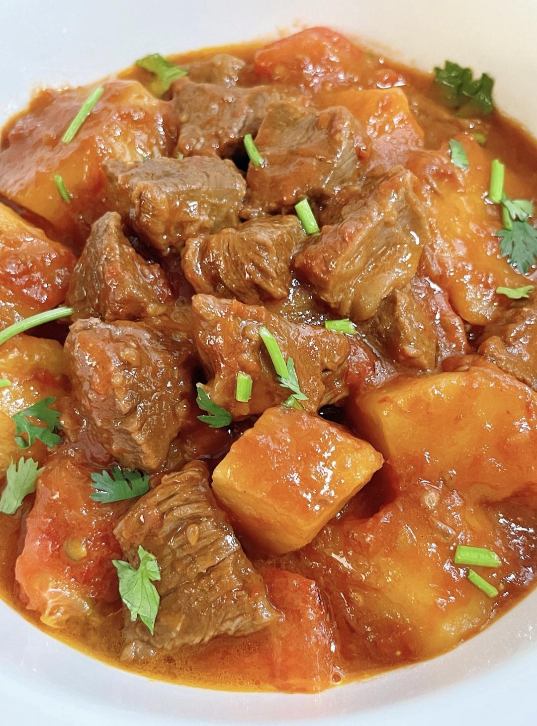 不过要是想来点浓郁的,那就得请出番茄了。番茄和牛腩简直是天造地设的一对,番茄在炖煮中慢慢融化在汤里,酸溜溜的滋味恰到好处地化解了牛腩的油腻,让整道菜变得活泼起来。红艳艳的汤汁看着就让人食欲大开,不管是配米饭还是蘸面包都特别合适,那种酸甜开胃的感觉,能让平常只吃一碗饭的人忍不住再来第二碗。土豆也是牛腩的好搭档,土豆炖到软糯,边缘微微融化在汤汁里,自然地把汤变得浓稠。咬开一块土豆,沙沙的口感跟牛腩的纤维感形成有趣的对比,既当了主食又当了菜,特别实在。 要是想换换口味,不妨试试咖喱和牛腩的异域风情。浓香的咖喱包裹着每一块牛腩,温暖的香料气息扑鼻而来,瞬间就能唤醒所有味蕾。这时候要是有一碗热气腾腾的米饭,把咖喱牛腩连汤带肉往上一浇,米饭立刻染上金黄的颜色,这样的组合任谁都难以抗拒。而到了冬天,清汤牛腩配上爽口的广东芥兰又是另一番境界——清澈的汤底里,牛腩酥烂,芥兰脆嫩,喝一口热汤,吃一块肉,再夹一筷子青菜,清爽不腻,浑身都暖烘烘的。 其实说到底,牛腩就像个随和的好脾气先生,跟谁都能相处融洽。它本身味道醇厚,但不会过于强势,总是愿意衬托搭档的优点。浓郁的配菜能让它更有层次,清淡的配菜又能凸显它的本味。所以在厨房里,你完全可以放开手脚尝试,说不定就能发现属于自己的独家搭配。毕竟吃饭这件事,最重要的还是合自己的口味。看着家人朋友吃得心满意足的样子,你就会明白,牛腩最好的搭档,其实是围坐在餐桌旁的欢声笑语。