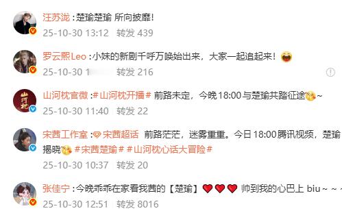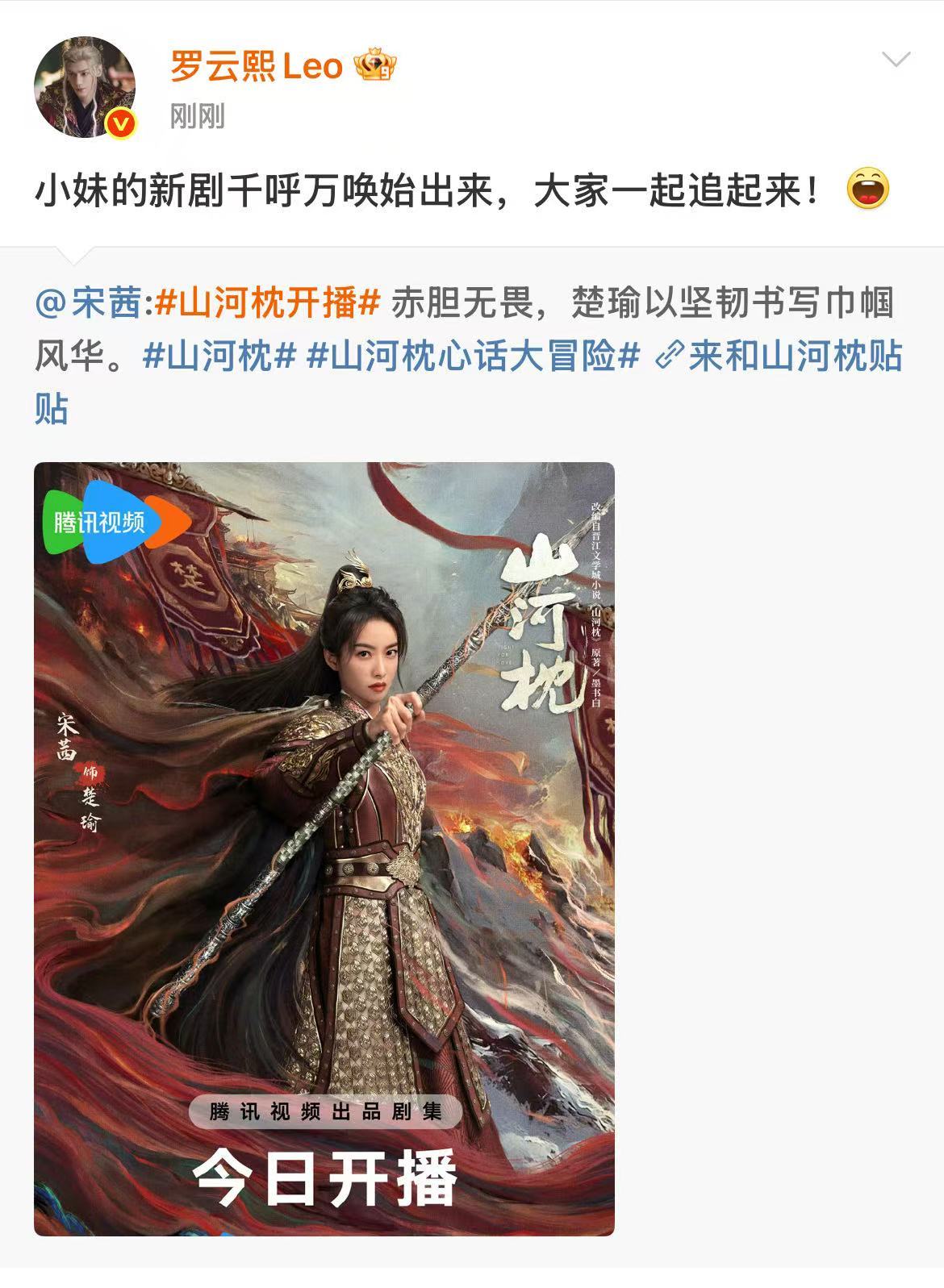汪苏泷宣传宋茜新剧 汪苏泷宣传宋茜新剧《山河枕》,今晚一起看起来!罗云熙宣传宋茜山河枕 罗云熙宣传宋茜新剧山河枕,之前宋茜也为罗云熙新剧打call,两位的友谊长存啊~今晚山河枕看起来!