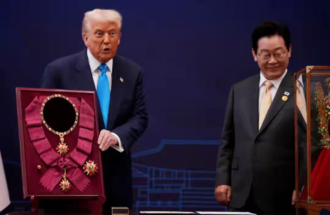 不要再说日本和韩国不懂人情世故了,这两天在对特朗普这一块,他俩可是一个比一个会来事。高市不仅送高尔夫推杆还甘当绿叶,而李在明直接拿出杀手锏送了特朗普一顶王朝金冠。说到底日韩是拿捏了特朗普的那点骄傲,要不然日本也不会提前提名特朗普参选下一届诺贝尔和平奖,而韩国更是顺了特朗普当国王的愿(前几天特朗普用AI制作了一段为自己戴上皇冠的视频)。