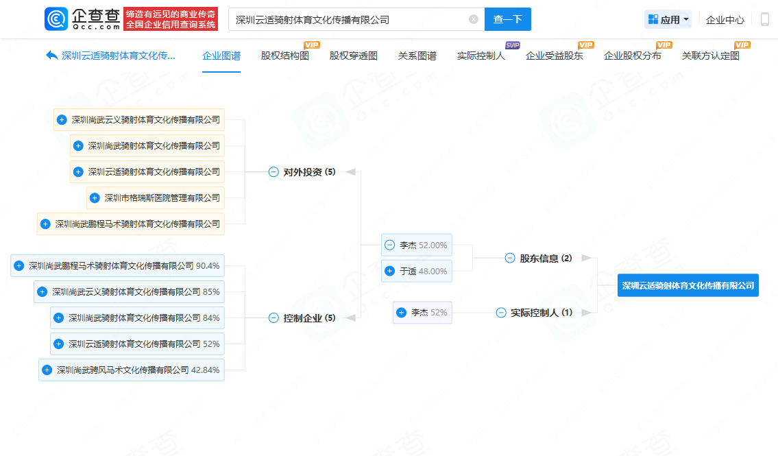 【于适持股一骑射文化传播公司拟注销】企查查APP显示,近日,深圳云适骑射体育文化传播有限公司进行注销备案公告,公告期为10月24日至12月8日。该公司成立于2024年10月,由李杰、于适共同持股。