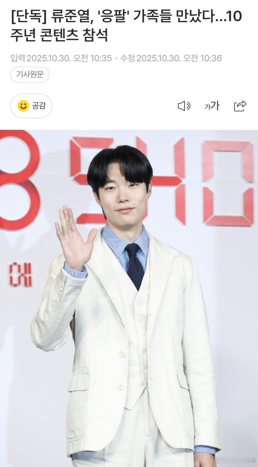 柳俊烈此前因为行程没有参与《请回答1988》团综的录制,但是考虑到是剧集十周年,