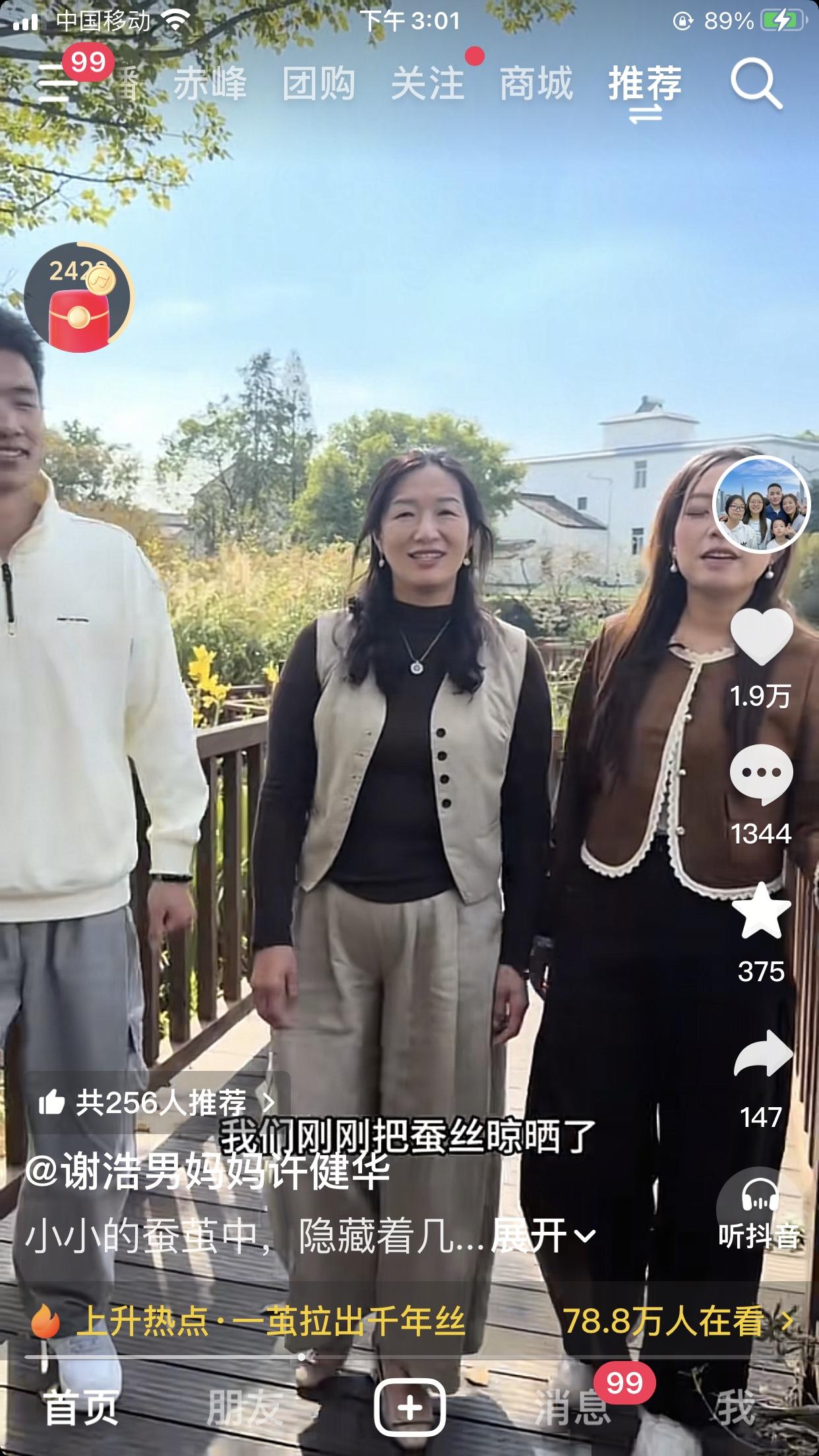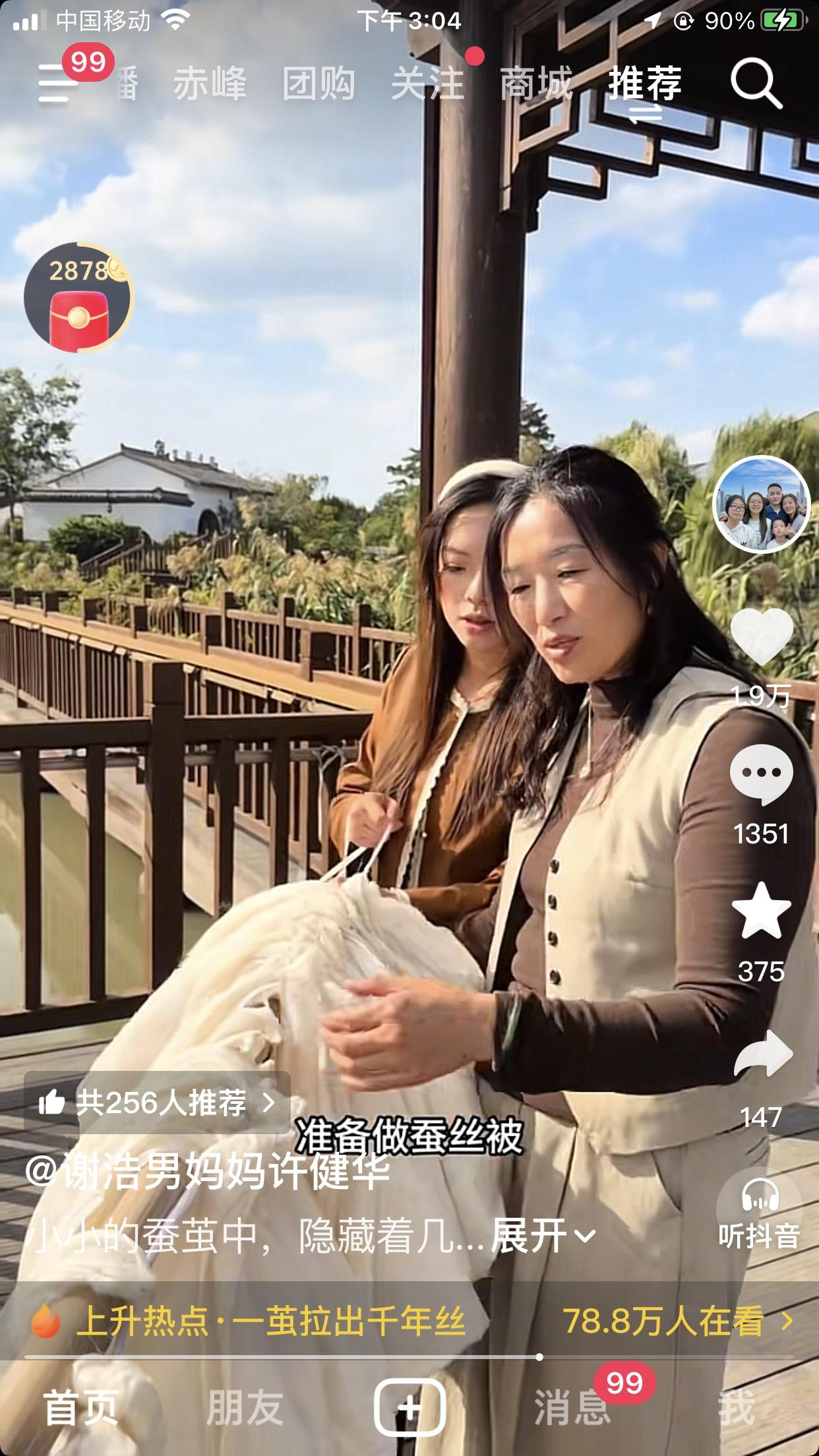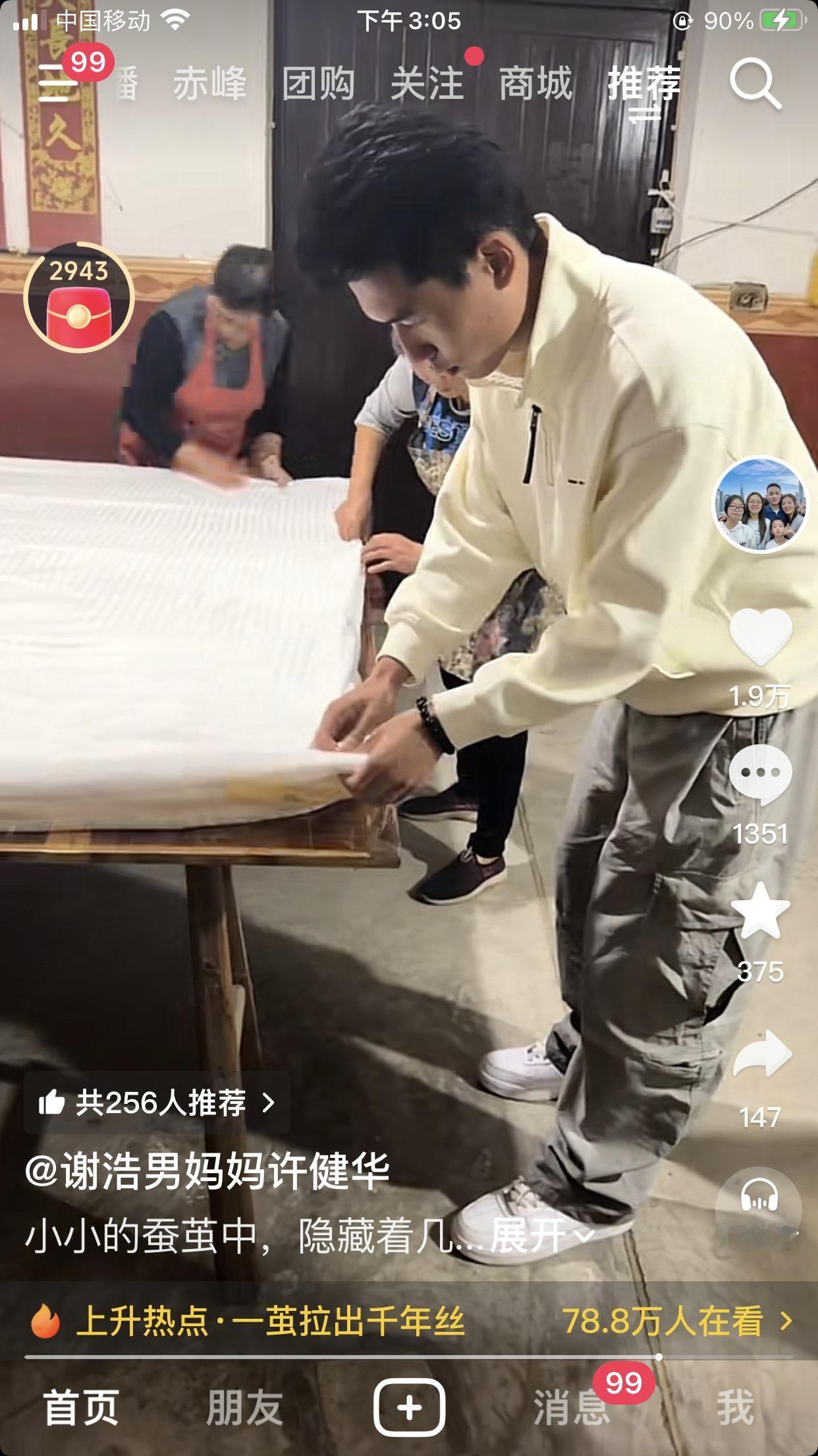 海军终于也能想起自己的妈妈了。11月2日直播前海军亲手做了一条蚕丝被送给妈妈:虽然我不能在你身边陪你,但我希望通过力所能及的方式来弥补这份遗憾,希望能通过这条被子代替我陪你度过寒冬。 是的,自从谢浩男认亲以后,海军就陪着浩男妈妈逛北京,举着浩男妈妈看升旗,虽然说这也是因工作需要,可是自己的妈妈也需要陪伴啊。