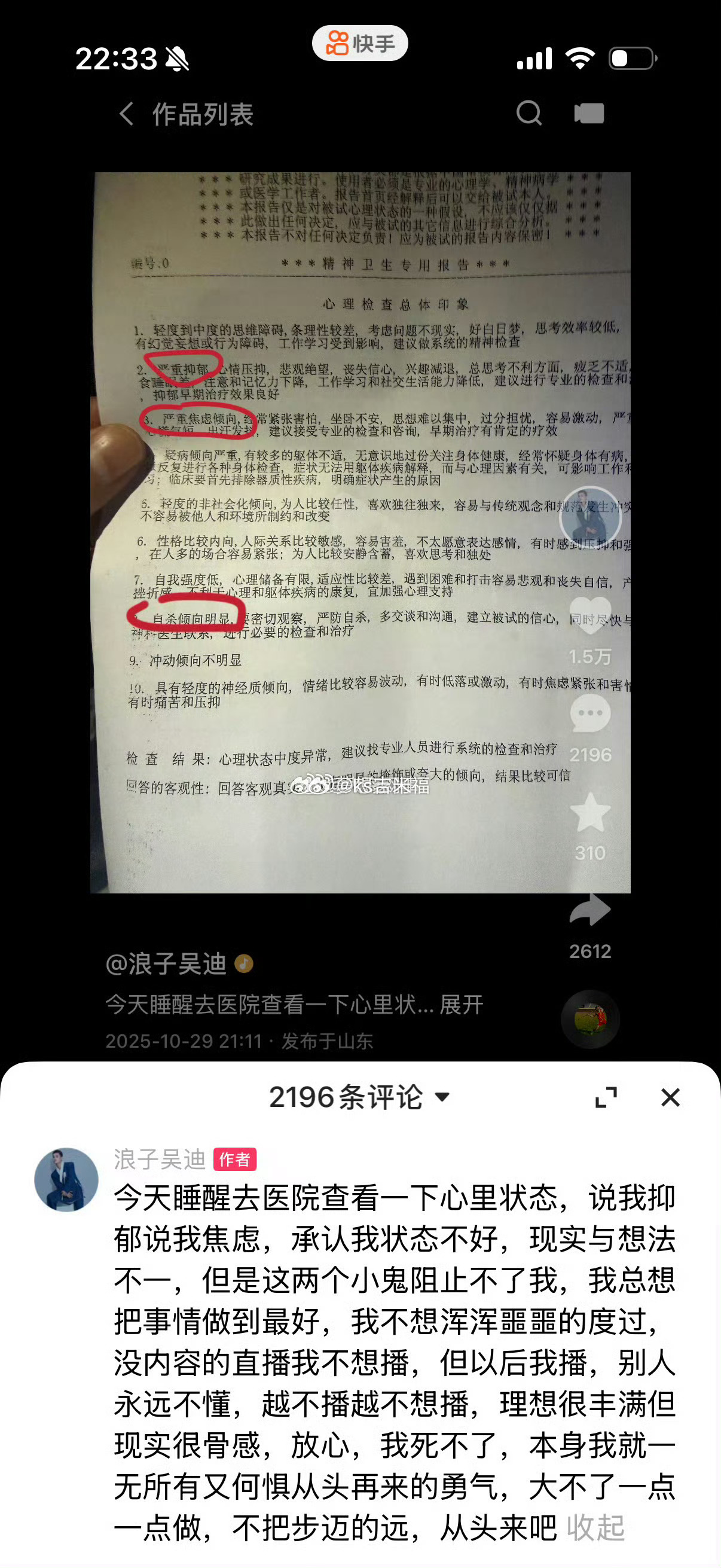 拥有价值8000万豪车布加迪赤龙的网红吴迪自曝有严重抑郁、症焦虑症,有自sha倾向 !吴迪自曝患抑郁症