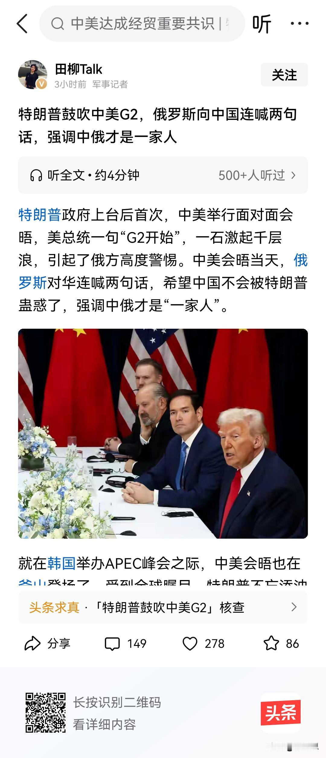 大国大局关系不会就因为一次两次见面就会改变的,相当于俄罗斯和美国见面,也没改变他们的关系。所以中美见面也不会改变彼此的关系,也不会造成中国和俄罗斯的关系的改变。中美是利益关系,中俄除了利益关系还是背靠背的邻居关系。