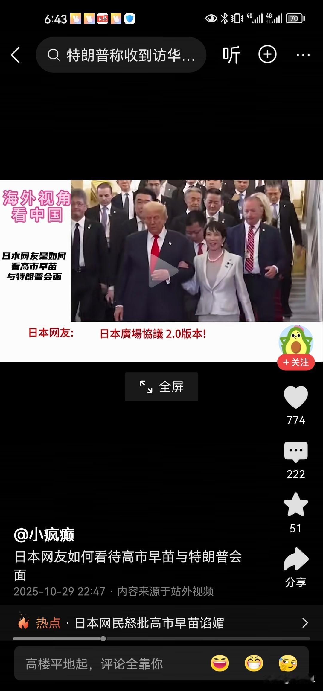 没想到一国的首相,对外国领导人如此的谄媚,看吧,这个日本女首相对特朗普一脸谄媚,含情脉脉,还连蹦带跳,真是绝了。[捂脸]我真为小本子感到悲哀[呲牙]日本的网民都看不下去了,他们觉得日本沦落到与弯弯同等地位了。都是媚美无下限了。