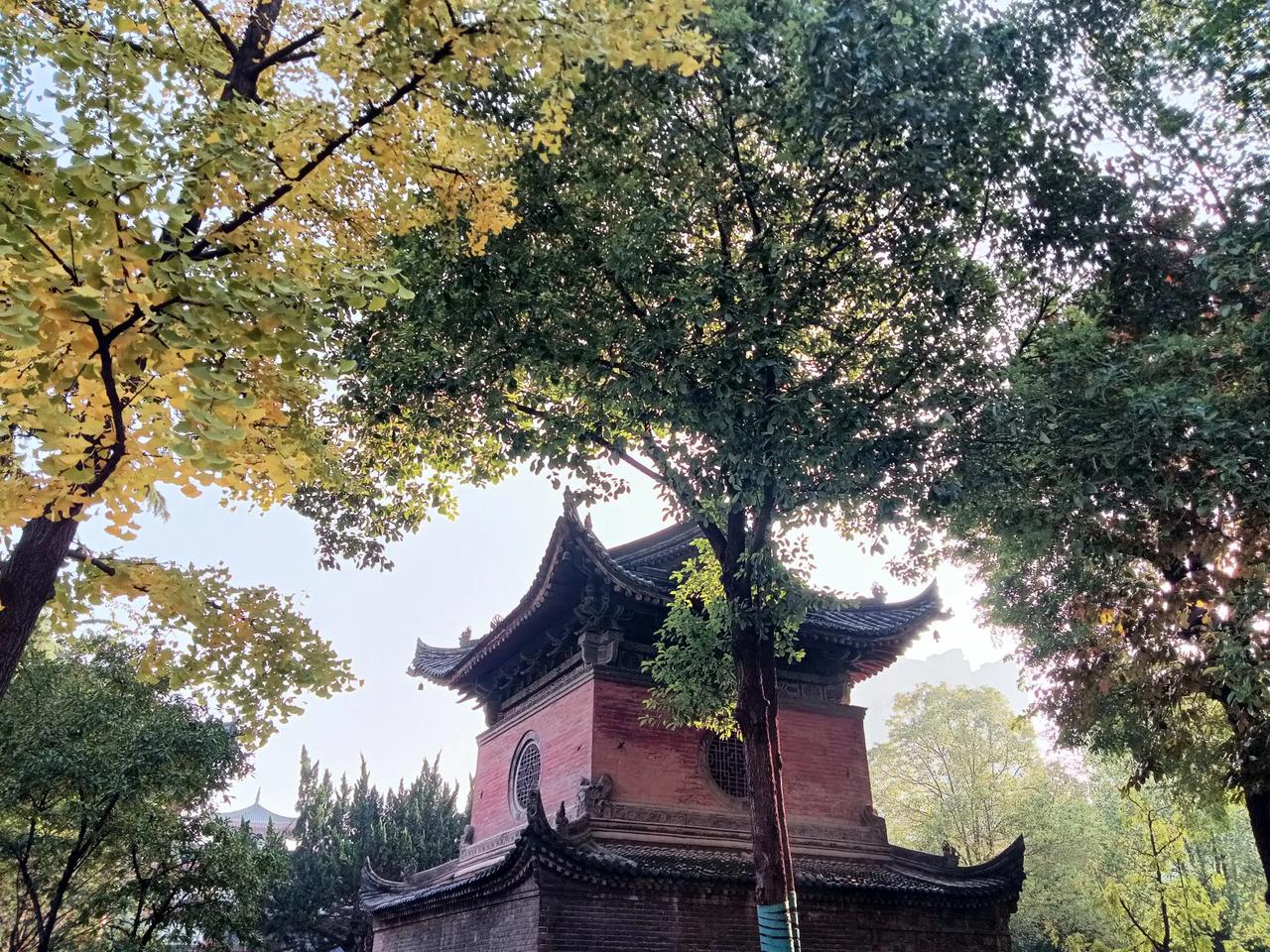 大兴善寺之秋 密宗祖庭兴善寺,宝塔玲珑诸佛临。 柿柿彤彤红光靓,银杏灿灿金煌煌。 罗汉松如韦陀立,猫戏鸽舞众生吉。 弥陀圣号心常念,大慈大悲保平安!