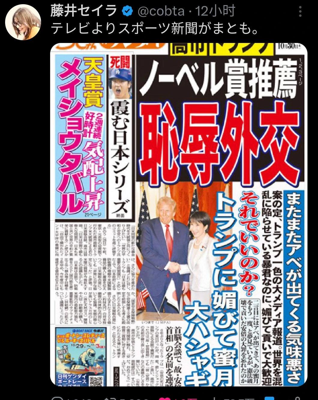 日本媒体大标题:高市早苗 耻辱外交 高市早苗演砸了 高市早苗当面拒绝美国要求