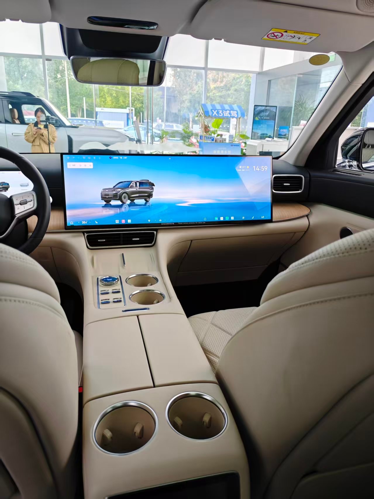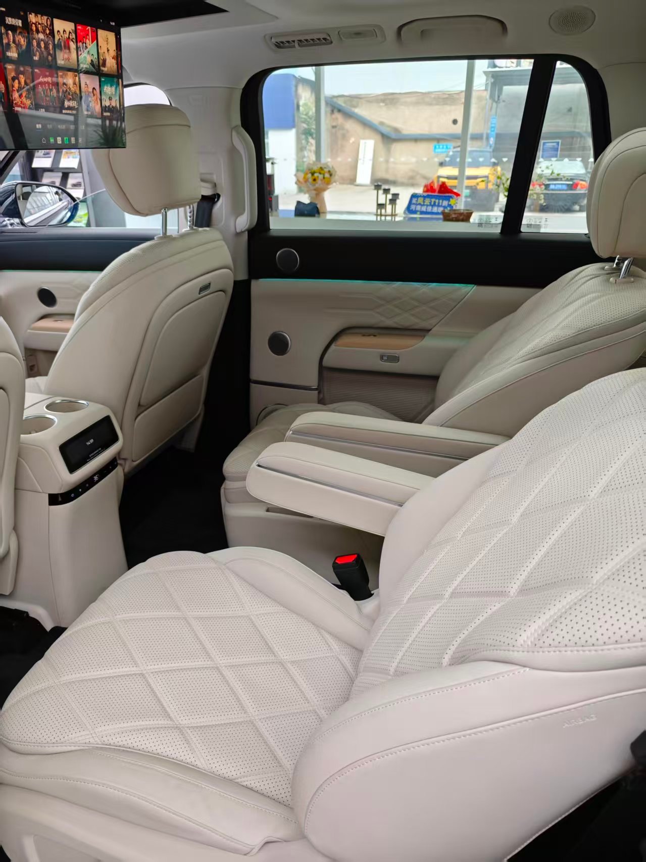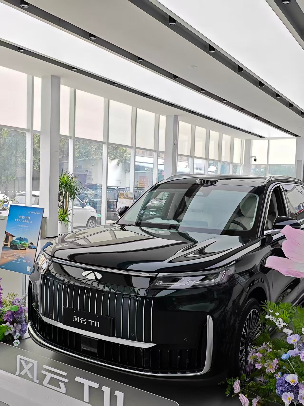 风云T11把安全配置全系拉满了,11个气囊和三排座椅加热都有。后排娱乐屏尺寸不小,车内有智能冰箱,全家出行每个座位都是VIP。