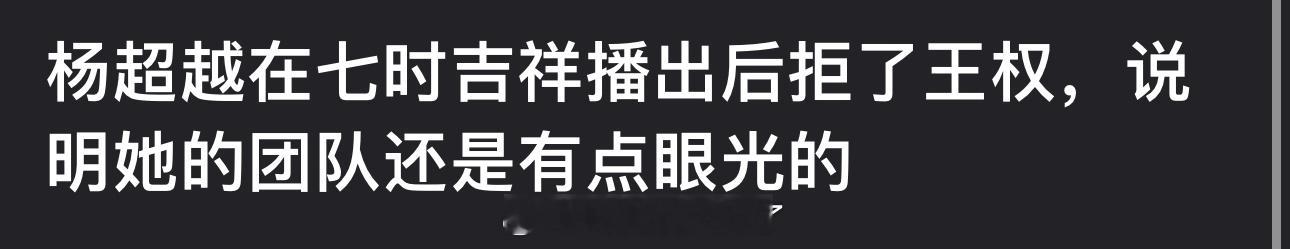 有网友说杨超越在七时吉祥播出后拒了王权,说明她的团队还是有点眼光的,大家怎么看?