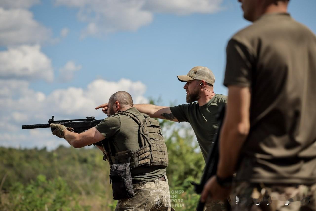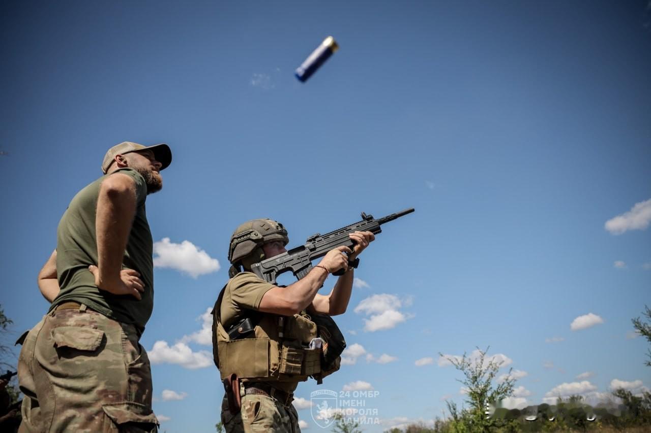 🇺🇦乌克兰定期进行击落FPV无人机的训练可以挽救生命和装备! 照片中,第24国王丹尼洛独立步兵旅的士兵正在与第11军的战友们一起训练,使用泵动式霰弹枪击落俄罗斯FPV无人机。 一台抛射机将模拟无人机的靶盘抛向空中。战士们必须锁定目标,并在无人机接近时将其击落。主要任务是比无人机更快到达。 教官们表示,泵动式霰弹枪是最容易掌握的武器,因此也是对抗FPV无人机的最佳选择。