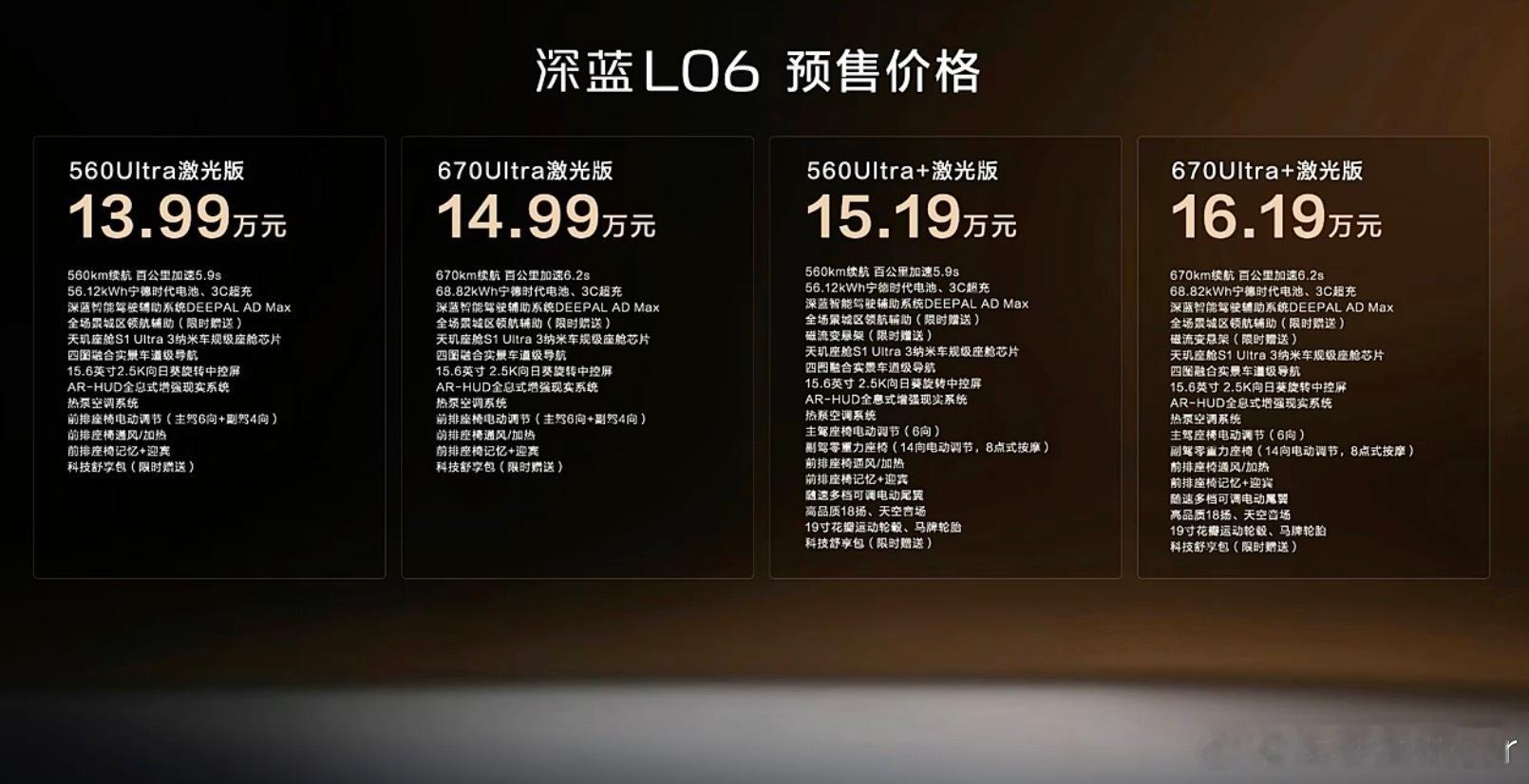 深蓝L06预售在即,五大维度诠释何为"技术普惠":磁流变悬架响应速度秒杀CDC十倍,端到端算法实现"老司机"级预判,3nm芯片算力领先行业五年,金钟罩电池保持零自燃记录,670km续航拒绝虚标。当这些百万级配置汇聚在20万区间,市场终将见证:深蓝的诚意,从来不只是堆料。深蓝L06用众多离谱造就超级靠谱深蓝L06入门满配预售价13.99万