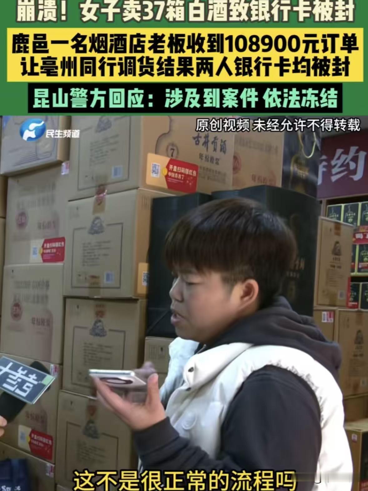 河南鹿邑,一烟酒店老板娘接了个108900元的大单,对方要37箱白酒,但是需要送到安徽毫州,老板娘说自己不不能跨区销售,但是可以让当地的同行给调货,对方表示可以,并很痛快的就把钱转到老板娘的银行卡上,同行收到货款后立即给安排了发货,万万没想到,没多久老板娘和同行的银行卡都被异地冻结,理由是涉诈资金,对此老板娘很不解,他买东西付钱天经地义,我怎么知道他的钱哪里来的?他骗人你找他你不能冻我的卡啊?网友:这种事时常发生,难道就没有办法了吗? 胡女士经营了一个烟酒店,最近遇到个糟心事,愁的连饭都吃不下。 前几天店里没什么生意,胡女士在店里坐着刷手机。 突然叮的一声弹出个消息,对方张口就要37箱白酒。 胡女士顿时来了精神,37箱白酒,那可是大单啊,一段价格得108900元。 胡女士将价格告诉对方后对方表示价钱不是问题,只要有货就行,自己着急用,随后发了个地址要胡女士送过去。 但是一看地址胡女士心凉半截,对方要把货送到安徽毫州,但自己却在鹿邑。 白酒销售有严格的跨区域限制,自己店里的货根本不能直接发亳州。 可眼看肥肉要飞了实在舍不得,她立马想起了在亳州开烟酒店的同行朋友。 俩人平时就有生意往来,赶紧打电话问能不能帮忙代发货,自己赚点中间差价就行。 同行朋友一口答应,苍蝇肉也是肉,哪有不要的道理。 就这样,胡女士转头就给买家回话,说自己因为区域限制的问题不能直接发货,但是可以让毫州当地的同行给他送货。 没想到,买家那叫一个痛快,一分钱没砍,直接要求发货。 这边胡女士的朋友把货刚发出去,买家108900元的货款就直接打到了胡女士的银行卡上。 胡女士收到钱心里美滋滋的,赶紧就把货款转给自己的朋友,两人还庆幸这客户真爽快,希望多多碰到这样的客户。 就这样,货送到了,钱也收到了,大家以为这事就完了。 万万没想到,没过多久,胡女士的银行卡都被冻结。 她以为是系统的问题,不知道发生了什么,赶紧给银行打电话询问原因。 竟被告知她的银行卡是被异地警方冻结的,理由是她收到的那笔108900万的货款是涉诈资金。 更糟的是,她联系上毫州的那个同行朋友,对方说自己的银行卡也被冻了。 胡女士脑子当时一片空白,赶紧给办案民警打电话,问这到底是怎么回事。 民警告诉她,买酒的那个人是骗子,他骗别人的钱直接打到了胡女士的账户里,然后自己则拿着酒去变现。 这话彻底让胡女士崩溃了,自己就是个开烟酒店的,踏踏实实做生意。 他买酒我发货,钱是他主动打过来的,我怎么知道这钱是哪来的。 骗子骗人你们找骗子去啊,凭啥冻我的卡,现在货没了,钱被冻了,难道要我钱货两空吗? 可民警表示被骗的钱从头到尾都没有经过骗子的账户,所以目前还没有找到人。 至于胡女士发出去的37箱白酒,让她自己找当地警方报案,异地警方管不了。 胡女士愁的头发都快白了,实在没办法,他找到媒体帮忙,希望可以把自己的卡解冻,或者帮自己把酒追回来。 她认为自己开门做生意,没有拒客的道理,自己这都属于正常交易。 现在自己卡被冻了,货也没了,别人被骗了,合着自己在这承担损失,这一点都不合理。 这事儿传到网上,评论区都炸了。 不少人替胡女士喊冤:凭啥老实人背锅?商家又没有火眼金睛,总不能收笔钱先去查源头吧? 出了事,只追钱不追货,这也太不合理了,骗子拿着酒跑路,损失全让商家扛? 但也有网友提醒说,这事其实早有征兆:这么大的单子,对方连价都不还,付款还这么爽快,本身就不正常。 之前多少商家栽在这种天降大单上,都是贪小便宜吃大亏。 还有人点出关键:白酒跨区销售本来就违规,为了赚差价钻空子,反而给了骗子可乘之机。 对此,不少人提出疑问,警方随便冻卡,真的合法吗? 这里得说句公道话,警方冻结银行卡还真不是乱办事。 《刑事诉讼法》第144条:警察、检C院为了侦查犯罪,能依法冻结涉案账户的财产,相关单位和个人得配合。 骗子用赃款买酒,这笔钱就成了涉诈资金,警方冻结账户是为了防止资金被转移,本质是保护诈骗受害者的权益,从程序上来确实没问题。 这事也给所有人提个醒,商家们遇到这类情况一定要记住三个要点: 第一,先查异常信号,只要是不砍价、付款快、跨区域的大额订单,必须多留个心眼,最好核实买家的身份信息。 第二,别碰违规操作,像跨区销售这种事儿,不光可能被品牌方处罚,还容易被骗子盯上。 第三,拿不准就报警,遇到可疑订单直接找当地警方咨询,总比事后丢钱丢货强。 现在胡女士还在和警方沟通,现在她最大的希望,就是能证明自己的清白,把银行卡解冻,哪怕能追回一部分损失也好。 总之天上不会掉馅饼,那些看似爽快的大单,背后可能藏着吃人的陷阱。 踏踏实实做生意,多留个心眼,才是真的稳。毕竟比起赚那点差价,保住本金和清白更重要。 对此,你怎么看呢?欢迎大家评论留言!