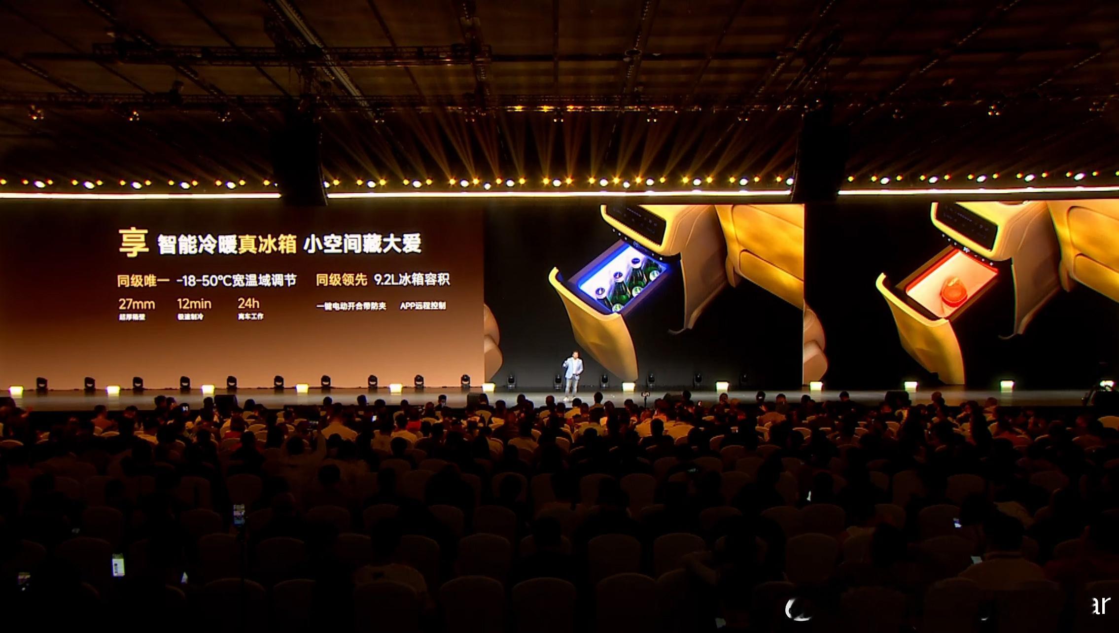 最让我印象深刻的是,它的冰箱能够达到-18~50摄氏度到温域。相比常见的-6~50摄氏度确实强不少。不仅如此,这次负责人用了很长的篇幅说安全,尤其是车身安全,用料相当猛,铝合金冲压零件、五纵十横的结构、目字结构的门槛等等。