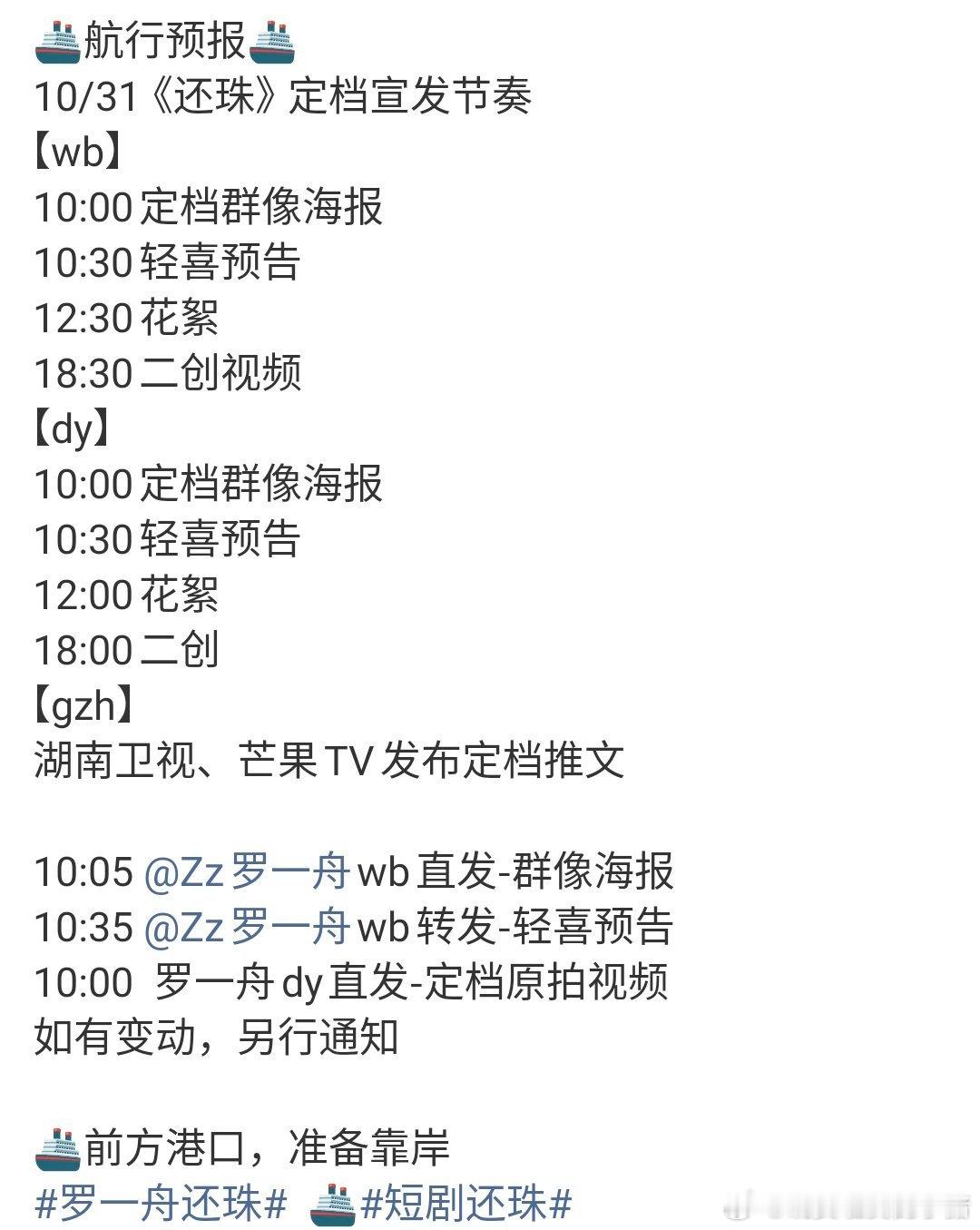 罗一舟还珠明天官宣定档[来]