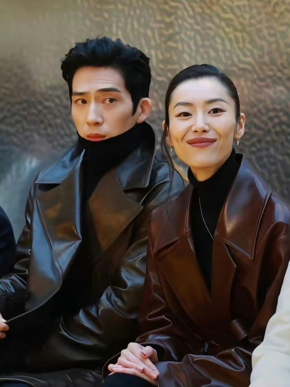 刘雯井柏然秀场合体刘雯井柏然情侣装合体 谁还没被刘雯井柏然的秀场同框戳中!刘雯酒红皮衣一出场就自带焦点,利落线条把超模气场焊在身上,勃艮第红太懂秋冬的浪漫;井柏然同系列皮衣接梗满分,低调质感里全是绅士味,连黑色内搭都像提前约好,这种不费力的情侣默契真的绝了