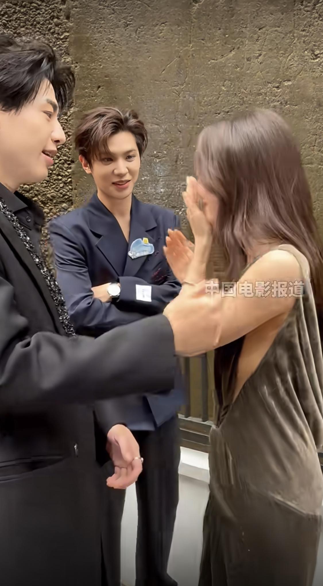 蔡文静、辛云来、黄明昊在台下热聊。 在中国电影大数据荣耀之夜,三人越聊越开心,辛云来这个i人,在蔡文静和黄明昊两个e人带动下,侃侃而谈。 黄明昊现在瘦的像个纸片人,蔡文静越来越美,裙子吸睛。辛云来依旧帅气清冷。 蔡文静 黄明昊