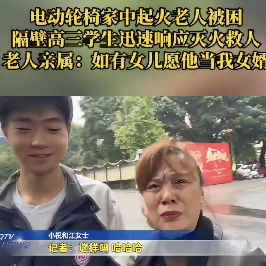 重庆少年火场逆行,光脚救出八旬邻居!阿姨含泪:想让他当女婿! 穿着短裤光着脚,18岁的祝野三闯火场。浓烟呛得人睁不开眼,地板烫得站不住脚,他一把抱起轮椅上的老人就往外冲。邻居奶奶的女儿红着眼圈说:“看他只穿条短裤冲进去,我眼泪根本止不住……我要有女儿,非得让他当女婿!” 谁说00后吃不了苦?祝野的脚底板烫得通红,救人的手却稳得很。断电、背人、灭火,一套操作比大人还冷静。平时训练浑身汗水,火场里就成了肌肉记忆。 好孩子从来不是夸出来的,是危难时豁得出去的。为这个重庆崽儿点赞! 也在这里提醒下大家:家里电动车充电真得留心,安全比啥都重要。