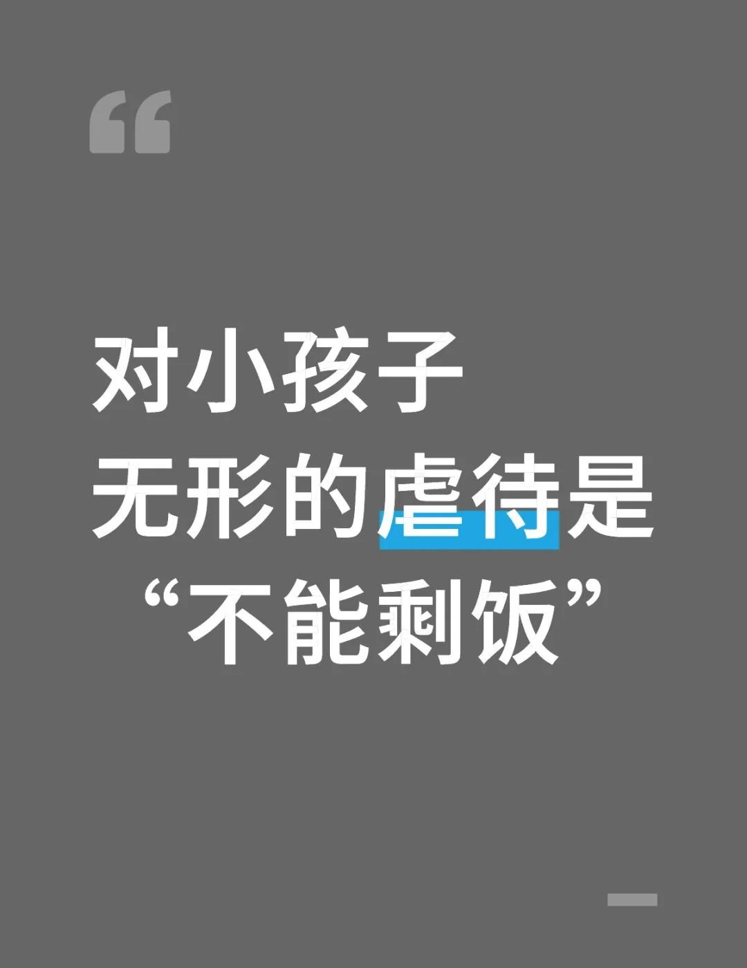 对小孩子无形的虐待是“不能剩饭” 小孩子胃小得像个玻璃弹珠,吃两口就顶到嗓子眼,家里也没零食垫着。大人盛好满满一碗饭,我根本不懂“吃不下”要怎么说,更不敢拒绝。吃了几口放下筷子,就被认定是“故意挑食”,硬逼我把碗扒干净。 有次饭泡在腻腻的汤里,每勺都又水又油,咽下去就犯恶心🤢。可看着大人皱起的眉头,只能攥着筷子往嘴里塞,吃完偷偷跑到门外干呕了半天,眼泪都呛出来了💧 不爱吃饭 每个孩子都不一样