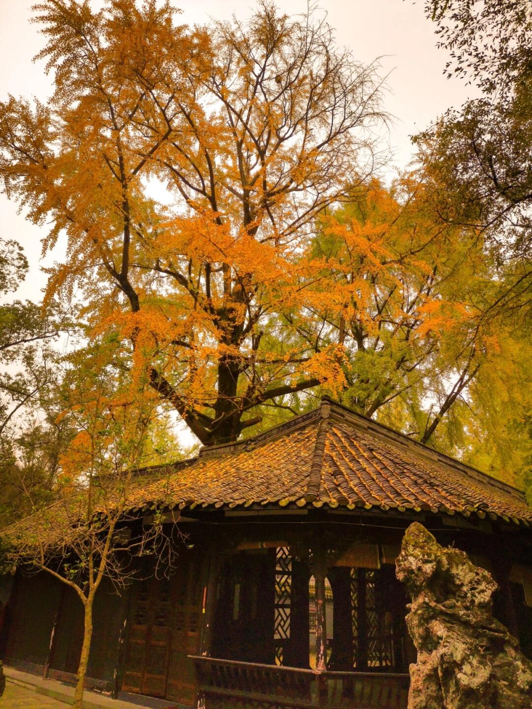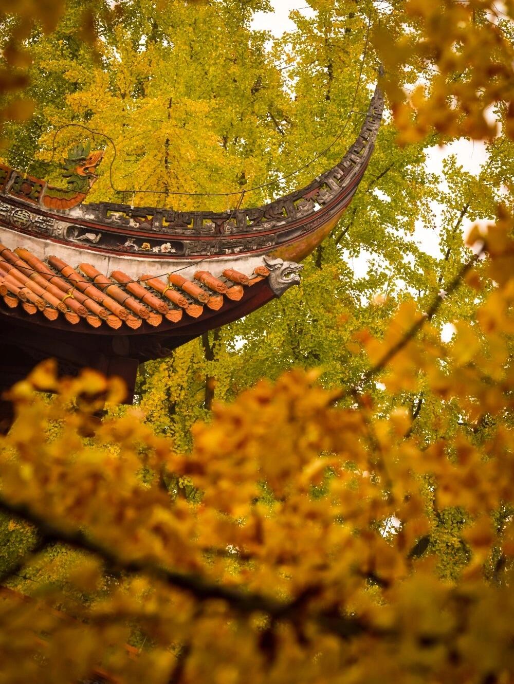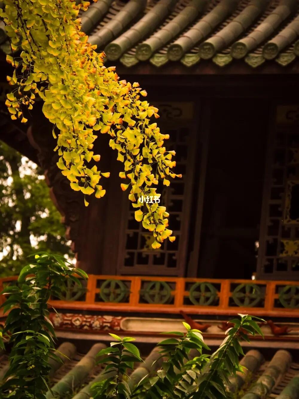 🎈蹲下来,用仰拍的角度拍银杏和建筑,既能避开人群,也能显得树木和建筑的气势