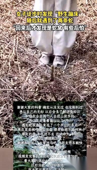 在蛇窝上蹦迪是什么感觉? 我跟你说,这姐们儿就体验了一把,事后差点没把胆汁吓出来。 山里徒步,发现个好地方。 松松软软,铺满了落叶,踩上去还带回弹。 好家伙,天然蹦床啊! 这姐们儿也真是心大,立马开启自嗨模式,又蹦又跳,还让朋友赶紧录下来,发个朋友圈炫耀一下大自然的鬼斧神工。 (估计蛇在窝里都懵了:楼上干啥呢?拆迁呢?) 正玩得开心,唰! 两条蛇窜了出来。 那一瞬间的惊吓,我估计她这辈子都忘不了。连滚带爬跑了一个半小时才逃出山。 但这都不是最刺激的。 最刺激的是,她把视频发到网上,有懂行的网友给她科普: “姐妹,你跳的那个地方,不是蹦床,是蛇窝。” 蛇。窝。 那一刻,隔着屏幕我都能感觉到她的后脊梁在冒冷汗。 之前有多开心,之后就有多后怕。 这事儿说白了,就是生活的一个缩影。 很多时候,你以为脚下是机遇,是风口,是免费的乐园,玩得不亦乐乎。 但你根本不知道,那层看似诱人的落叶底下,盘着一窝什么东西。 最恐怖的,从来不是危险突然出现的那一刻。 而是事后你幡然醒悟,发现自己曾经在悬崖边上跳了那么久的舞。