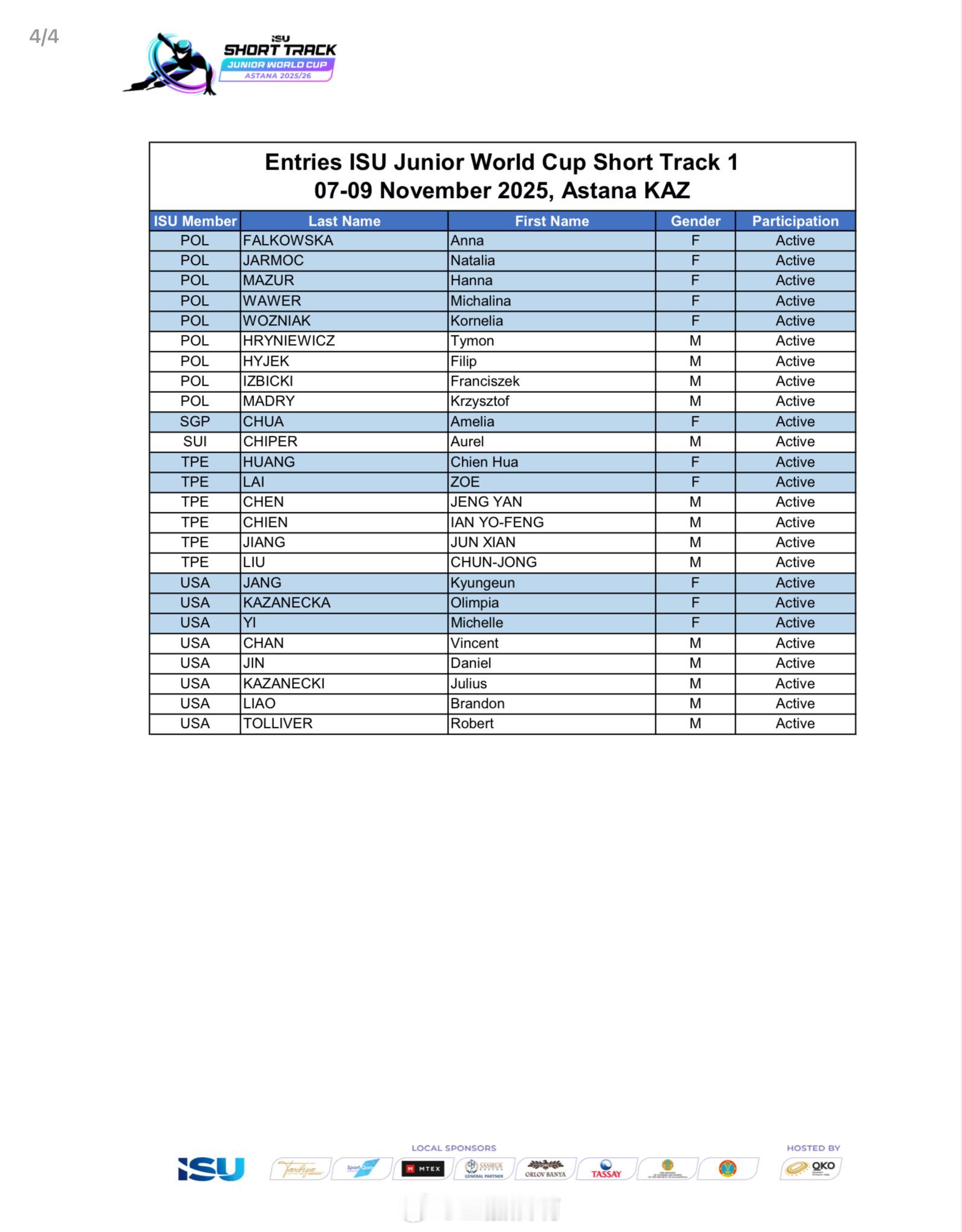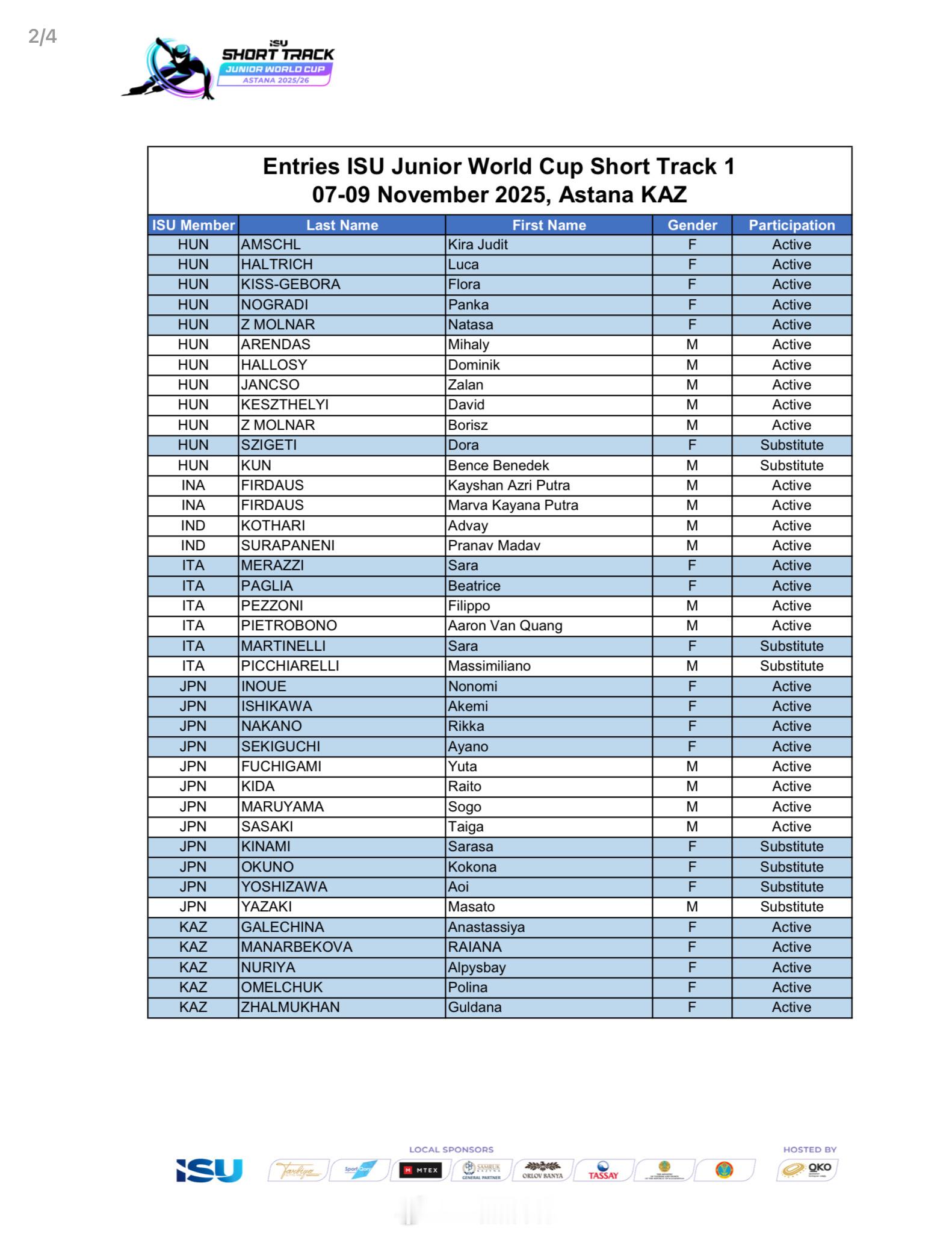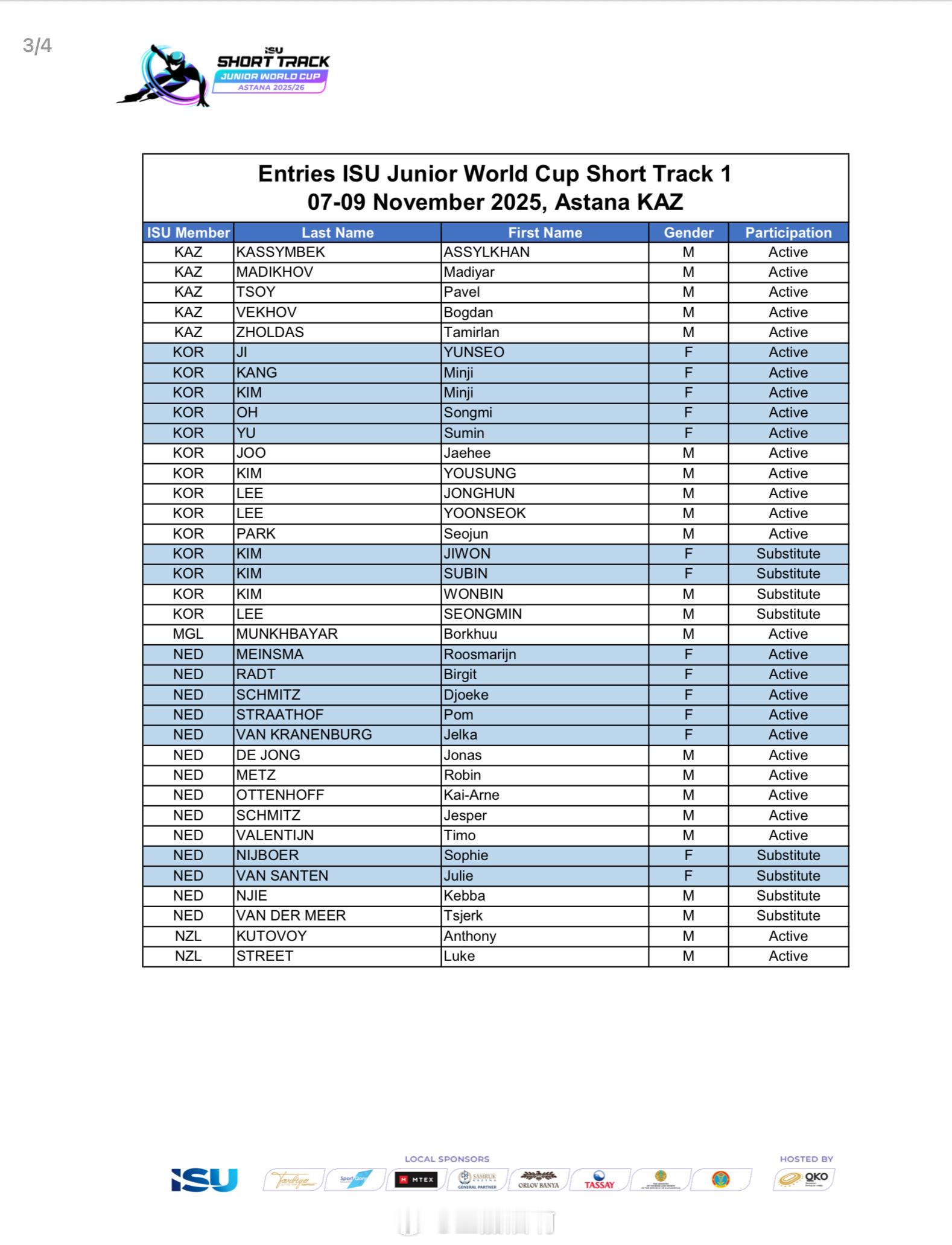 25-26短道速滑青年世界杯第一站阿斯塔纳站