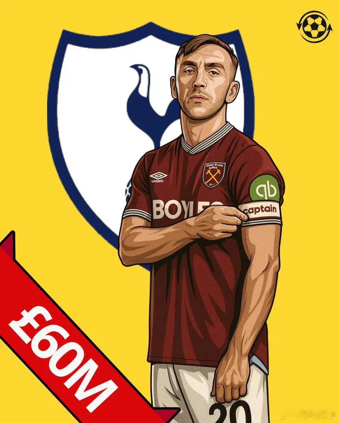 热刺希望如果西汉姆联降级,他就能以大约 6000 万英镑的价格加盟。