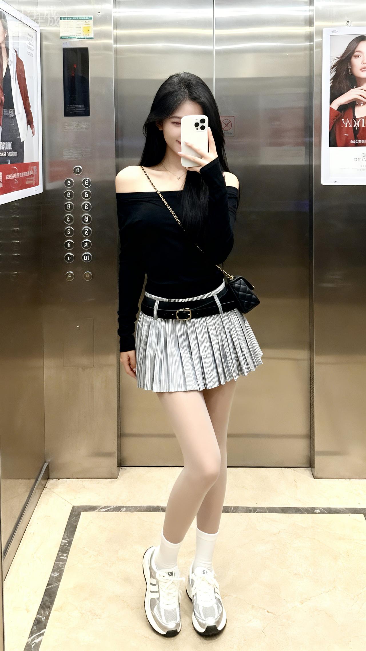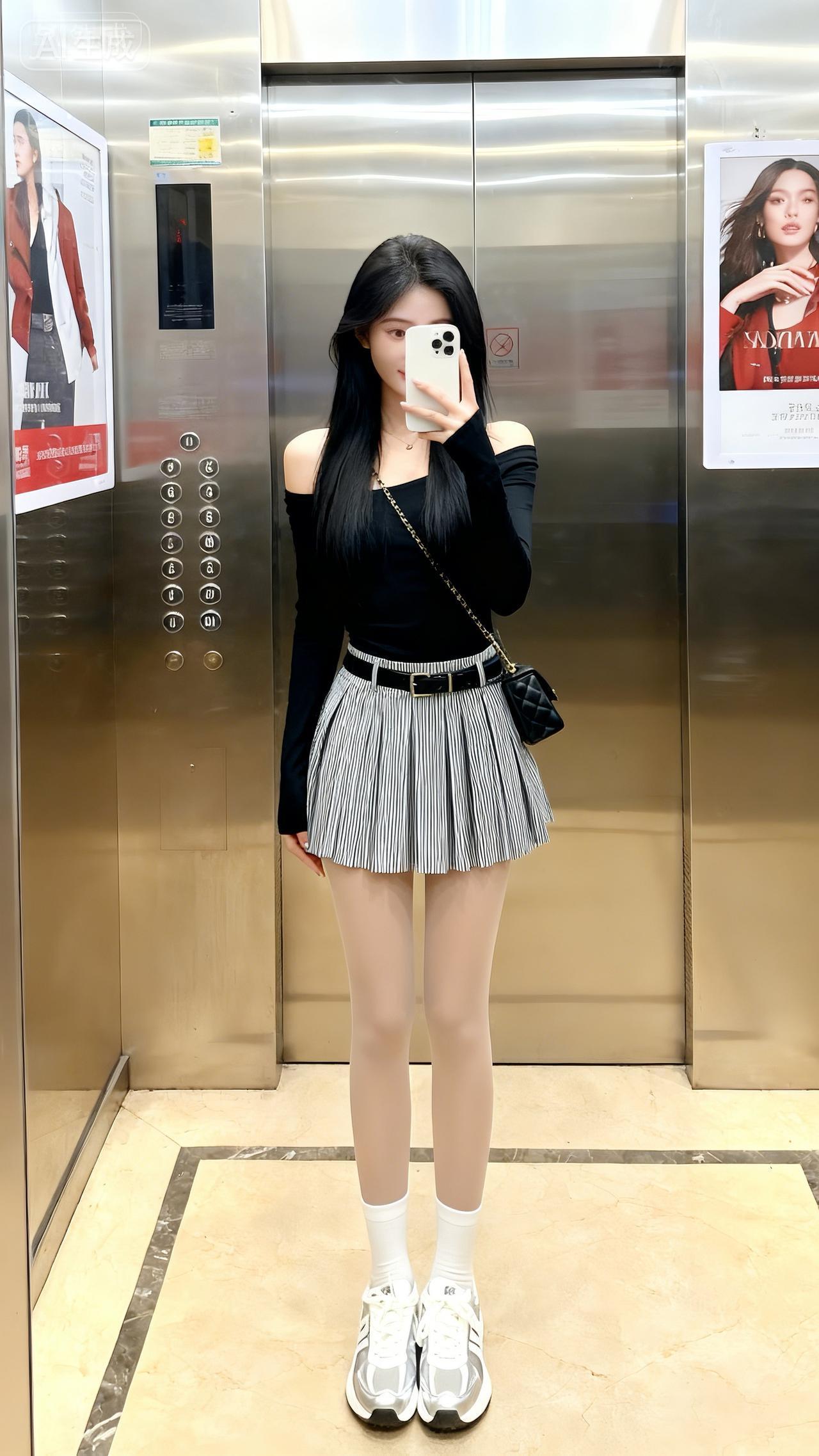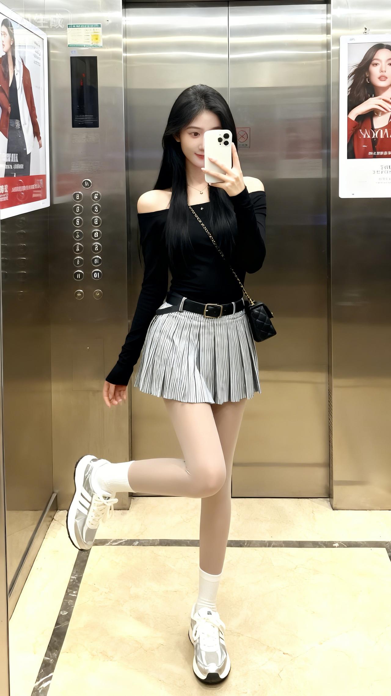 拍照姿势 御姐 大长腿电梯拍照 丝袜穿搭