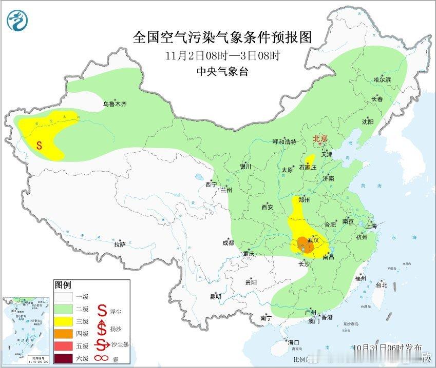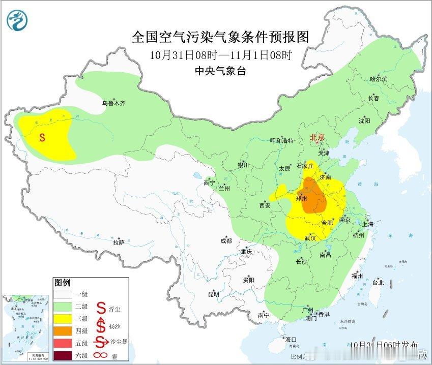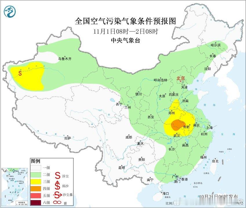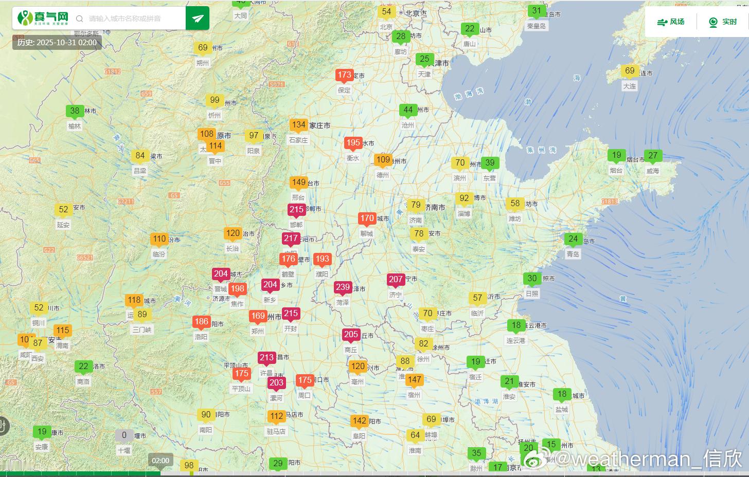 今天白天,雾会逐渐变淡。今后3天,随着弱冷空气南下,霾也会缓慢向南转移。因为冷空气弱,难以彻底清除霾。也为后续霾的向北回返,埋下伏笔——11月2-3日冷空气东移,逐渐转为地面高压后部,11月3-7日在冷空气活动的间歇期,华北黄淮的大气扩散条件差。立冬开始前,可能会先经历网友戏称的25节气——立霾。