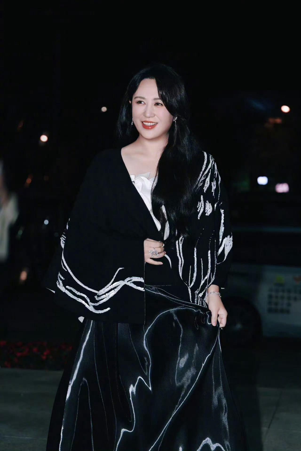 马丽下车神图有了 马丽下车神图一身黑白穿搭端庄大气,黑裙的光泽感加分,整个人从容又自信,每一张都很出圈