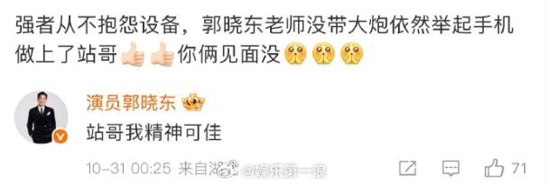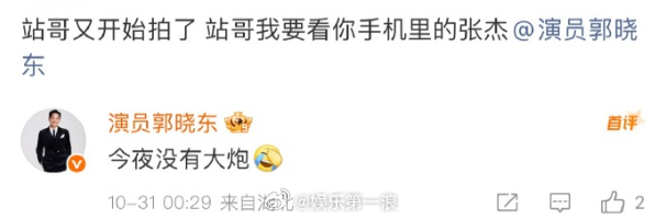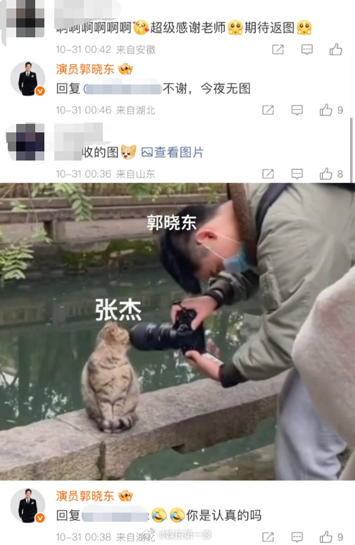 郭晓东回复张杰粉丝郭晓东 张杰站哥 哈哈哈哈郭晓东在盛典上拍张杰,杰粉喊话让他把照片放出来,郭晓东回复、饭撒~