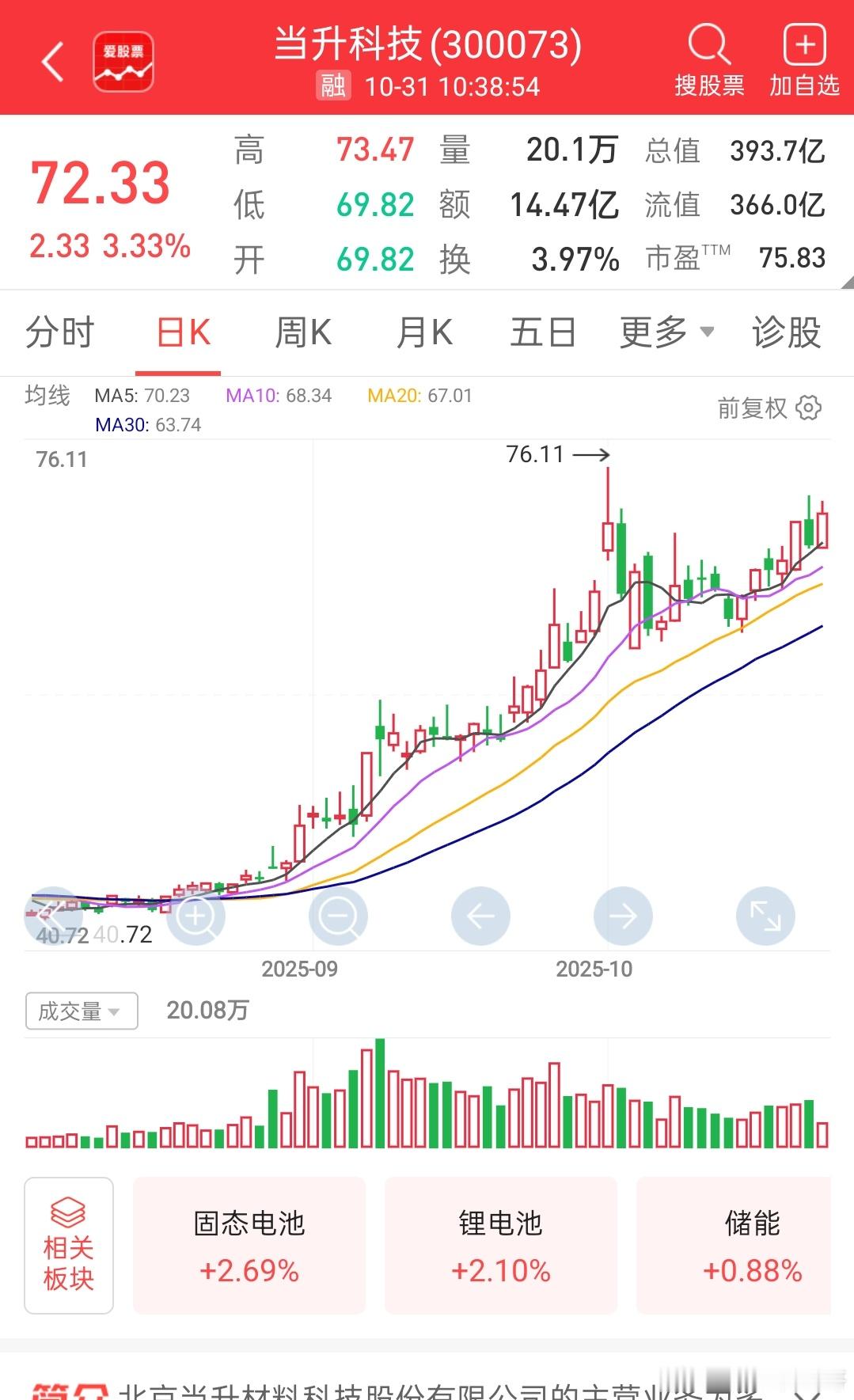 电池这块冯哥也是早早就布局了,当升科技从67冯哥就埋伏了,到现在也是非常给力了,这一波高抛低吸上来已经完美,美滋滋过周末了[吃瓜][吃瓜]
