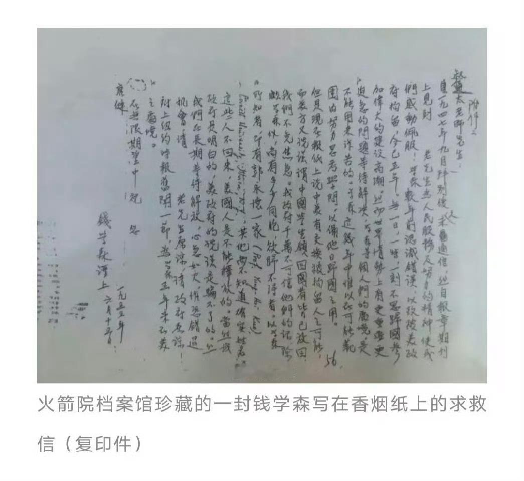 “被美政府拘留,今已五年。无一日、一时、一刻,不思归国参加伟大的建设高潮。”这是1955年6月,钱学森写在香烟纸上的一封信。