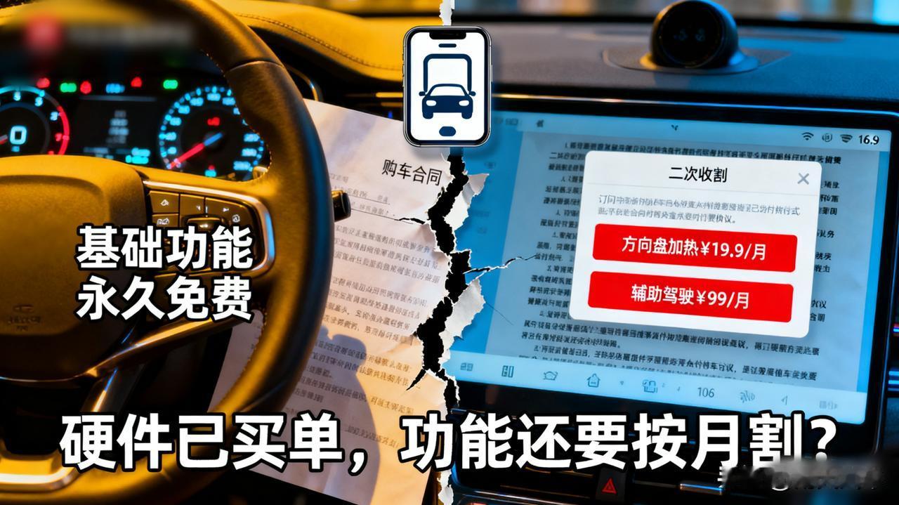 “软件定义汽车”时代,买车就像买手机?订阅制是割韭菜还是真香? 方向盘加热、座椅通风、辅助驾驶高级功能,全要按月付费开通。车企美其名曰“常用常新”,但消费者感觉被“二次收割”。你们能接受这种模式吗? 我觉得,硬件钱我花了,基础功能就该给我! 汽车互联网化 买车付费 订阅制汽车 汽车功能付费 汽车app 汽车不用方向盘 汽车软件架构
