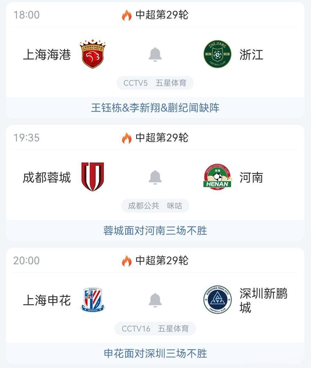 中足联真是奇葩,裁判安排引发争议,关系到争冠的三场关键比赛都没有安排外籍裁判。中超第28轮,争冠球队上海申花对阵大连英博、成都蓉城对阵青岛西海岸的比赛本土裁判的执法都引发争议。 1.上海海港对阵浙江 时间:10月31日18:00 主裁判:傅明 直播平台:CCTV5 预测比分:2:2 2.成都蓉城对阵河南队 时间:10月31日19:35 主裁判:艾堃 直播平台:成都公共 预测比分3:1 3.上海申花对阵深圳新鹏城 时间:10月31日20:00 主裁判:买买提江 直播平台:CCTV16 预测比分:3:2 为了保证公平公正,应该首先安排外籍裁判和央视直播;其次是统一时间开球。 那么问题来了,争冠比赛没有安排外籍裁判,会不会留下暗箱操作空间?那支球队能够成为本赛季中超联赛冠军?#中国足球#