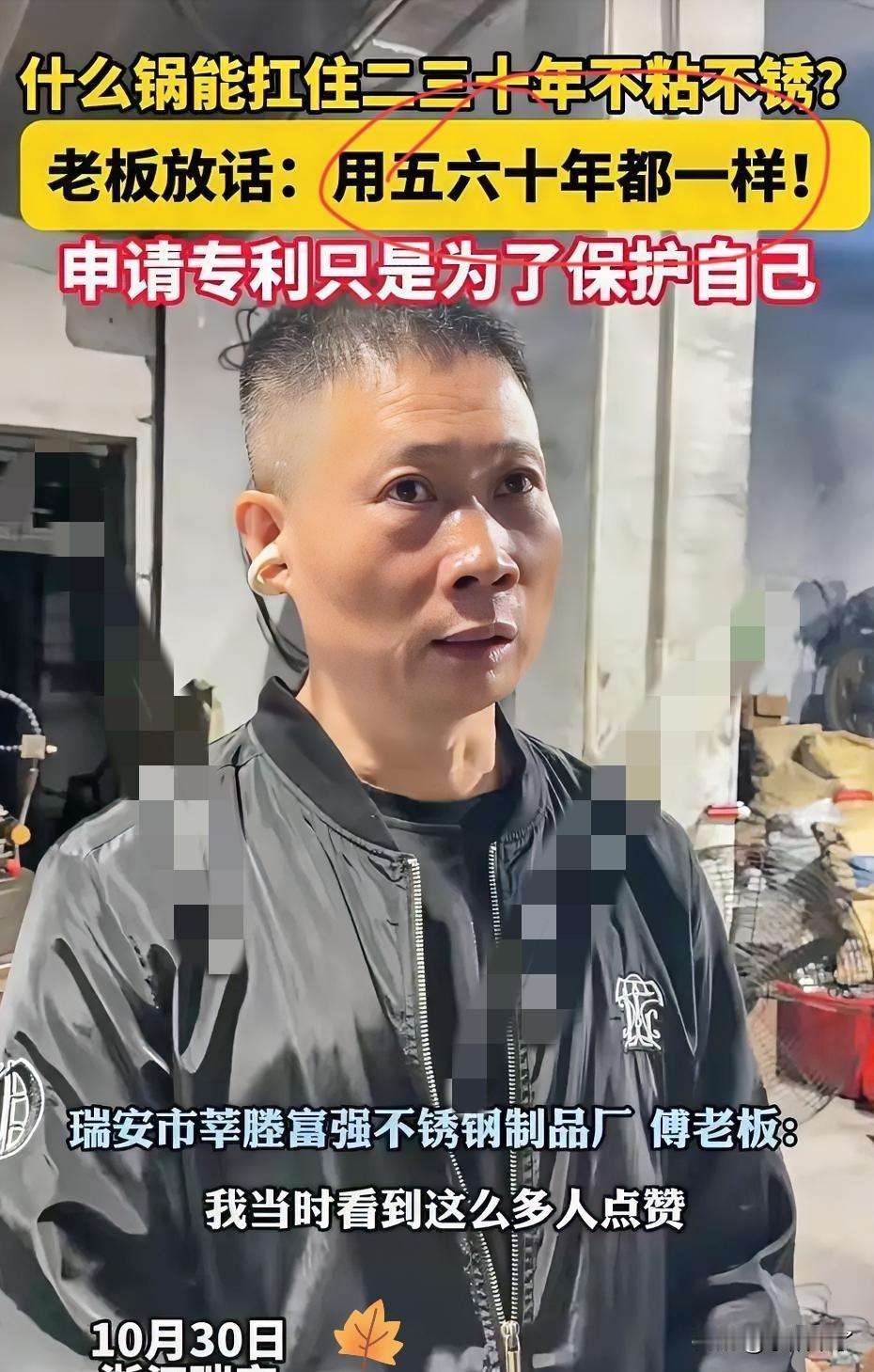 被网友赞誉为“一锅传三代,人走锅还在”的良心锅,我心里一直有两个疑问:为何这么好的锅,用了二三十年依旧不粘锅? 为啥好货会停产?答案里全是良心商家的坚守与无奈! 能做到几十年耐用,靠的从不是噱头:25年前就用304不锈钢,0.8mm厚一体成型,连手柄防烫橡胶都申请专利,这份较真在当年太难得! 可偏偏被仿品逼到停产,劣币偷工减料压价,正品扛不住成本只能退场,不是品质输了,是败给了投机者的套路! 还好时光不负匠心!老用户全网求助意外带火,老板果断复产,60元定价诚意拉满。这才是市场该有的样子:好产品或许会迟到,但绝不会被消费者遗忘! 其实做一件东西,只要你的质量好、价格合理,就有人会选择你,信赖你!