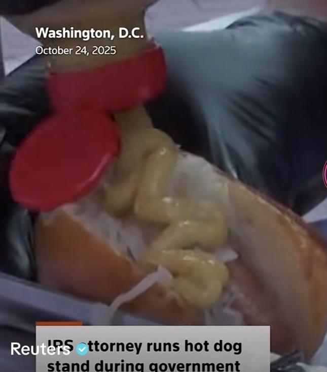 美国国税局律师穿着西装打着领带,在街头摆摊卖热狗补贴家用,由于政府关闭没有收入他不得不出去摆摊賺钱,看得出来美国人是真的不存钱,公务员一个月没工作就吃不起饭了,他们一直盼望着赶紧回到工作岗位中,至少能够有稳定的收入