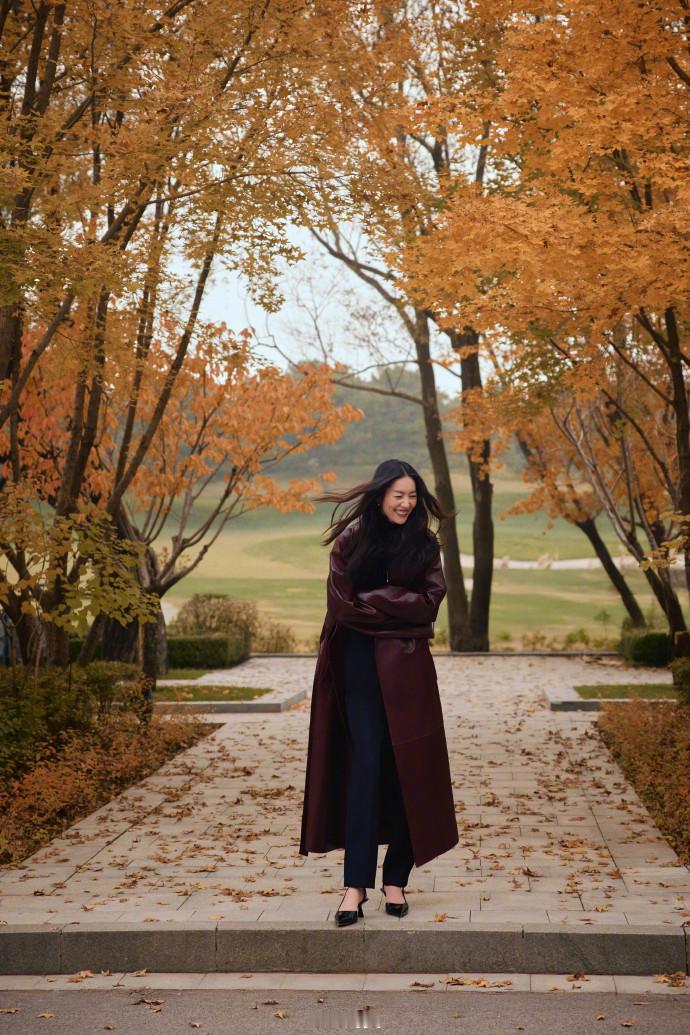 其中刘雯以一袭质感深红色皮质风衣Look登场,光泽感面料映衬秋日柔光,同色系腰带则勾勒利落线条,尽显干练与优雅并存的强大气场!尤其内搭黑色极简羊绒高领与长裤延续了一贯的极简姿态,在层次与质地的碰撞中,诠释出属于秋冬季节的温度与深度~