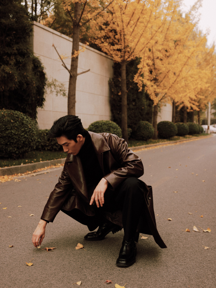 镜头转向井柏然,则以一件棕色皮大衣搭配All Black羊绒内搭突出型格一面,宽肩窄腰的身形衬得整个造型利落又挺拔,儒雅、有型,将成熟男性的沉稳魅力也是尽数展现。