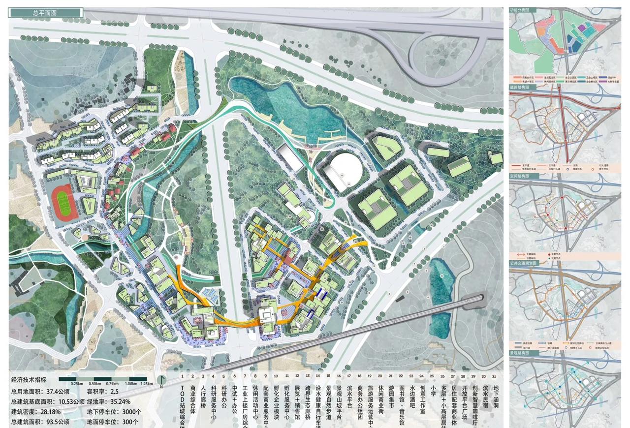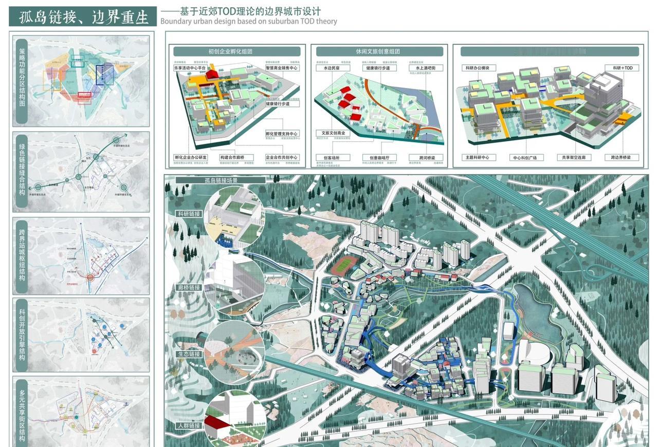 Tod理论展板分享 一、TOD概念 TOD即“交通导向型开发”,是将城市发展与公共交通深度绑定的规划策略,核心是减少汽车依赖、提升交通效率,打造可持续宜居城市。 二、街道TOD 聚焦轨道交通(地铁、轻轨等)沿线街道,是TOD策略在街道层面的具体落地。 三、核心特点 1. 高密度混合用地:融合住宅、商业、文娱等功能,提升土地效率,缩短通勤距离。 2. 慢行友好设计:配建宽人行道、完善骑行设施,优先保障步行与自行车出行。 3. 多元交通融合:整合公交、慢行、电动工具等,降低汽车依赖,缓解拥堵。 4. 注重空间品质:规划地标、景观及广场、公园等公共空间,兼顾美观与社交需求。 四、目标与总结 以紧凑、多功能的城市形态,通过便捷公交改善环境与效率,提升居民生活质量,现已成为全球可持续城市规划的主流模式。环艺展板 毕业设计 环境设计tod