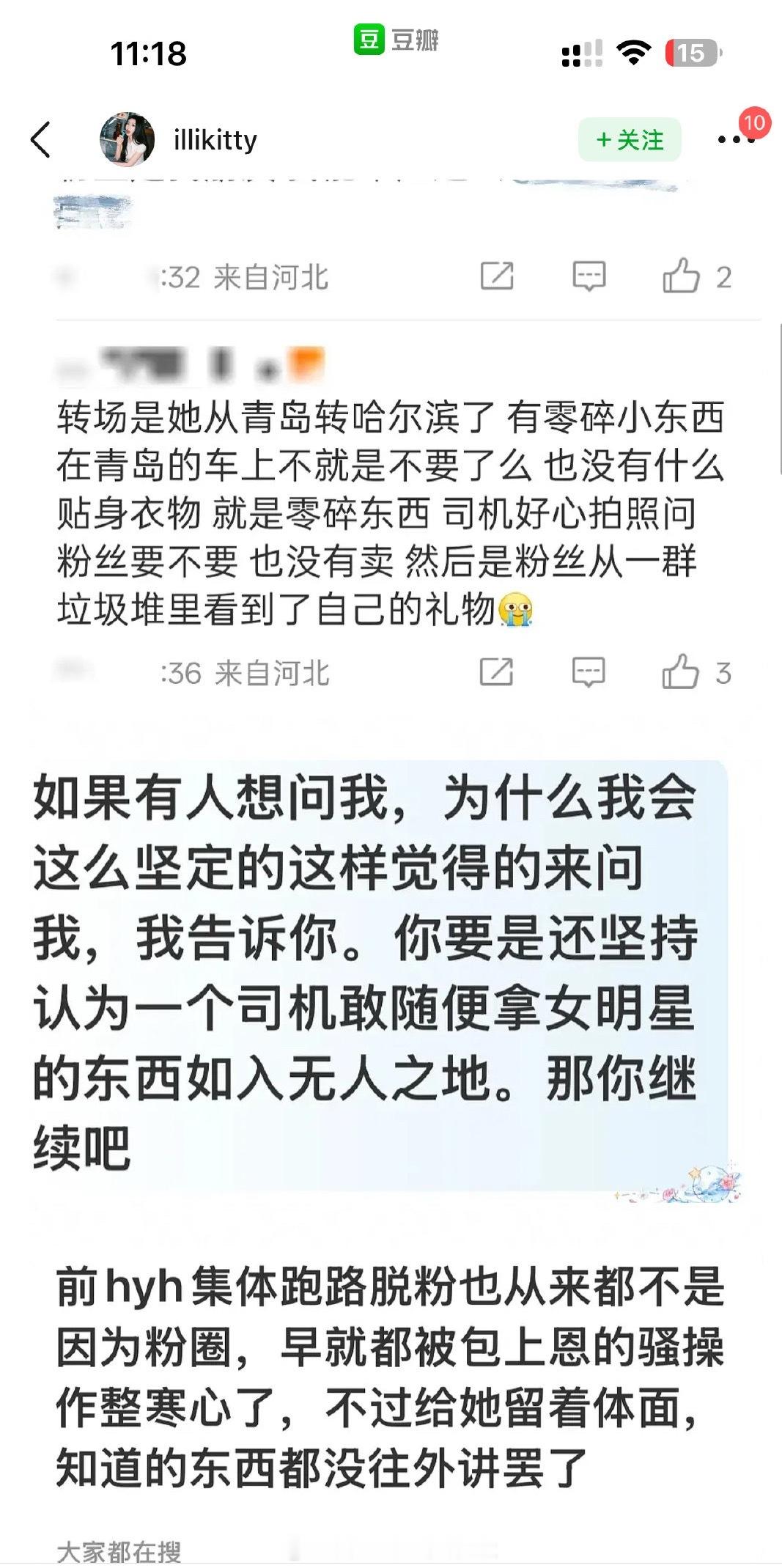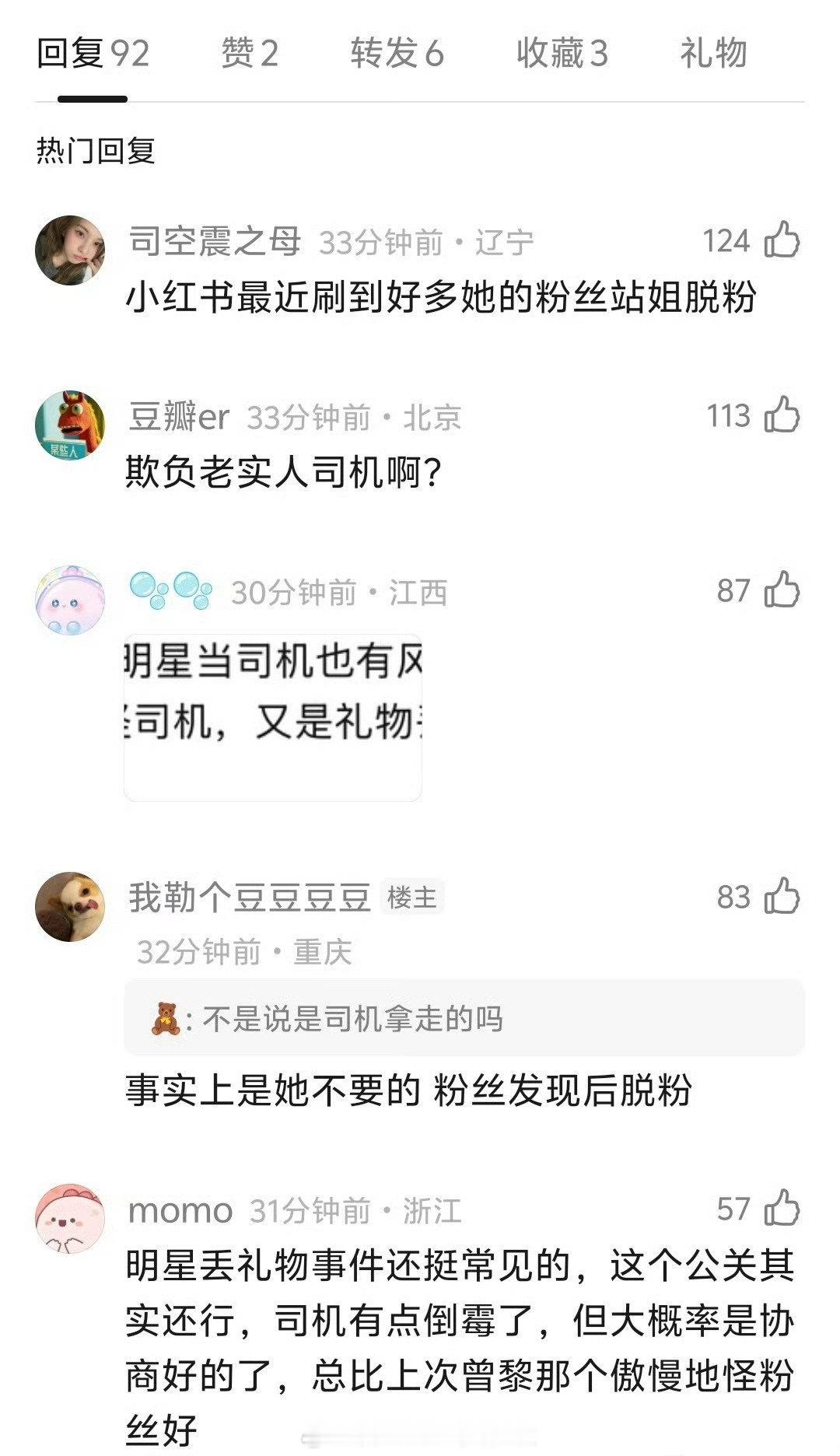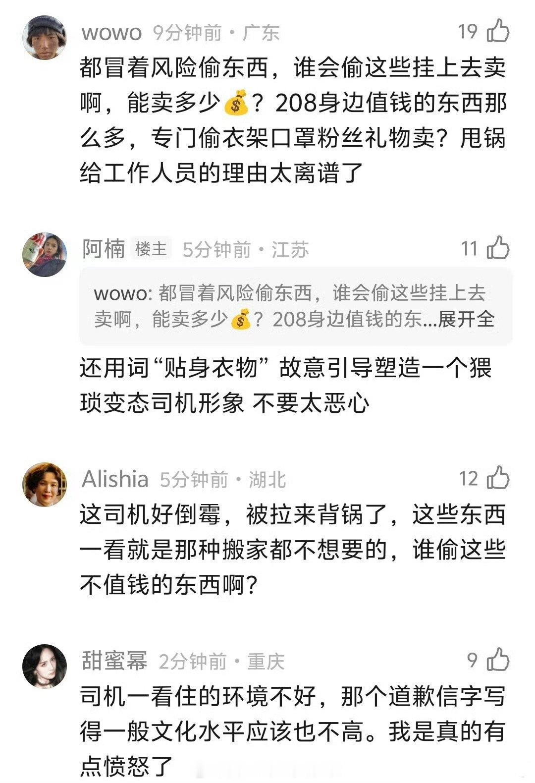 话题里风向好像反转了,有网友发帖说东西不是司机偷的,是私下处理了包上恩不要的东西,里面有粉丝的礼物。