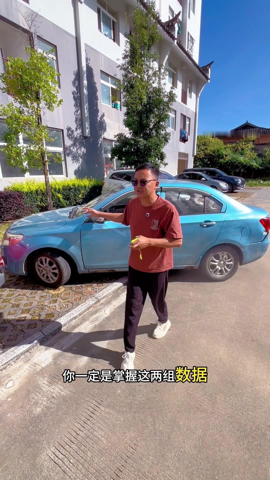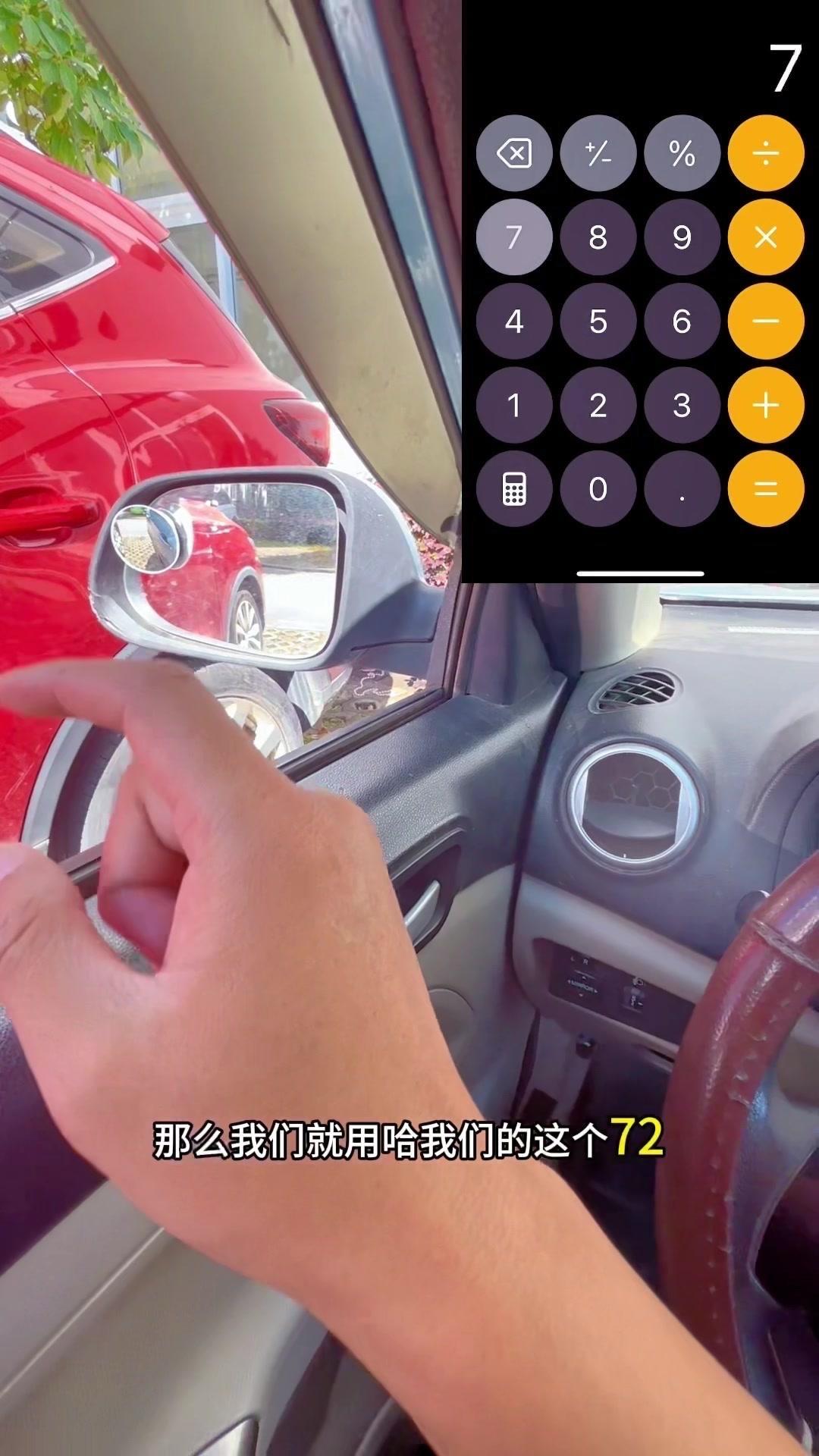 🛠️新手开车最怕剐蹭?学会这招,车内就能判断车头角车距! 1️⃣先记两组关键数据:车辆轴距(前轮到后轮中心点的距离,如2.4米)和方向盘转动角度(打满45度用0.45表示,一圈30度用0.30,半圈15度用0.15)。 2️⃣用公式"轴距×角度=安全车距":比如轴距2.4米,打满方向盘就是2.4×0.45≈1.1米,这就是车头角到障碍物的安全距离(约30厘米以上不剐蹭)。 3️⃣实际应用:倒库或转弯时,观察车外视角,按"车距÷轴距=角度"计算打方向盘角度。比如车距72厘米,72÷240=0.3,对应打一圈方向,即可精准避开剐蹭。
