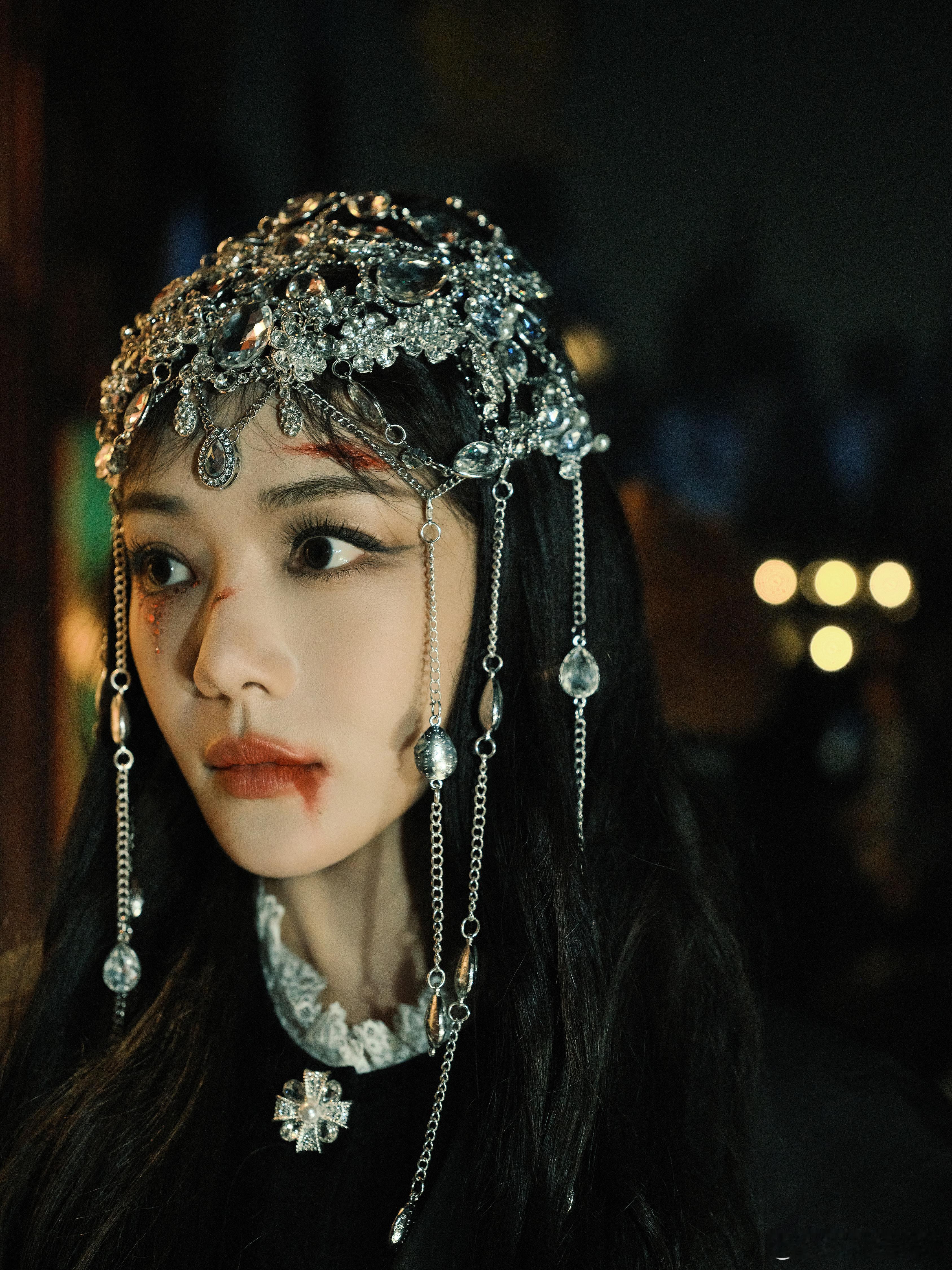 邓家佳cos暗黑女巫 万圣节发布一组cos大片,神秘暗黑风拉满,银饰头饰搭配哥特风服饰,仿佛从神秘庄园走出的暗夜女郎,这变装功力姐姐太会玩了~