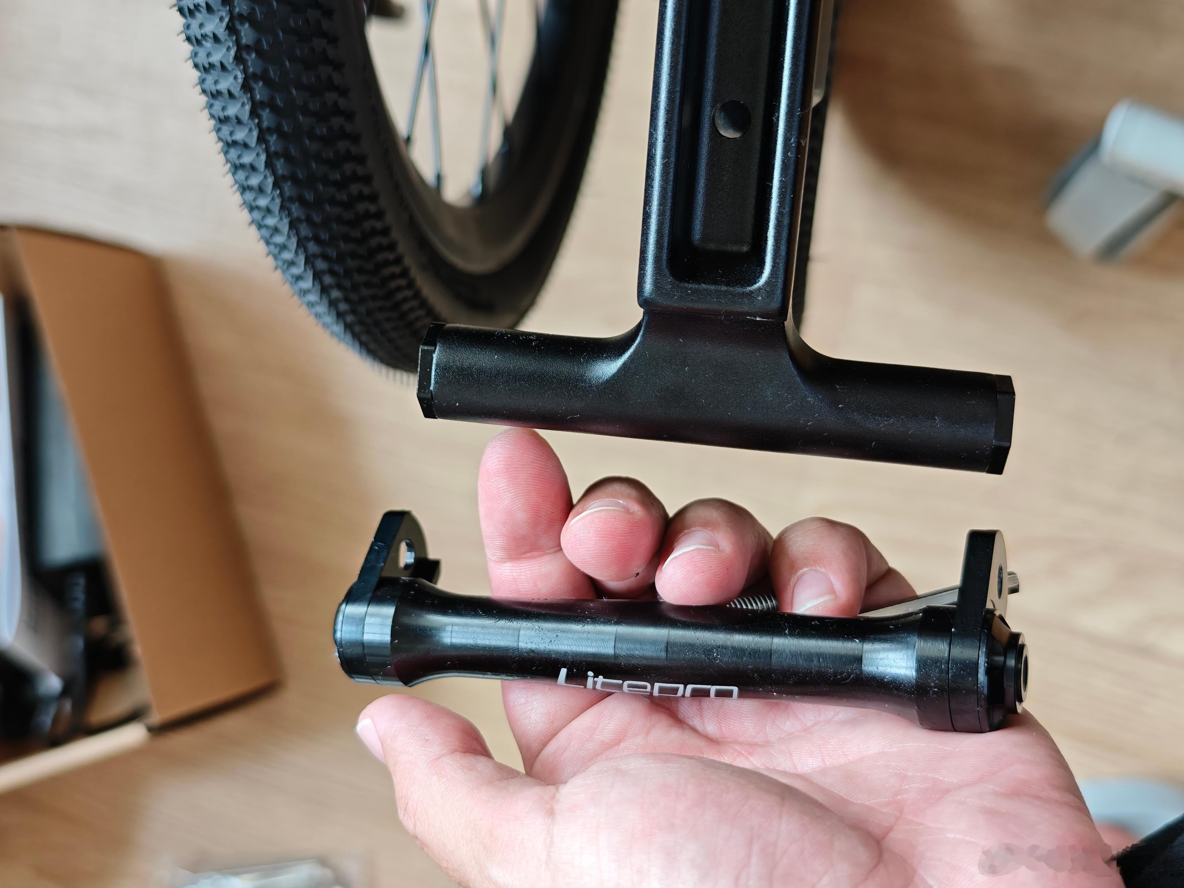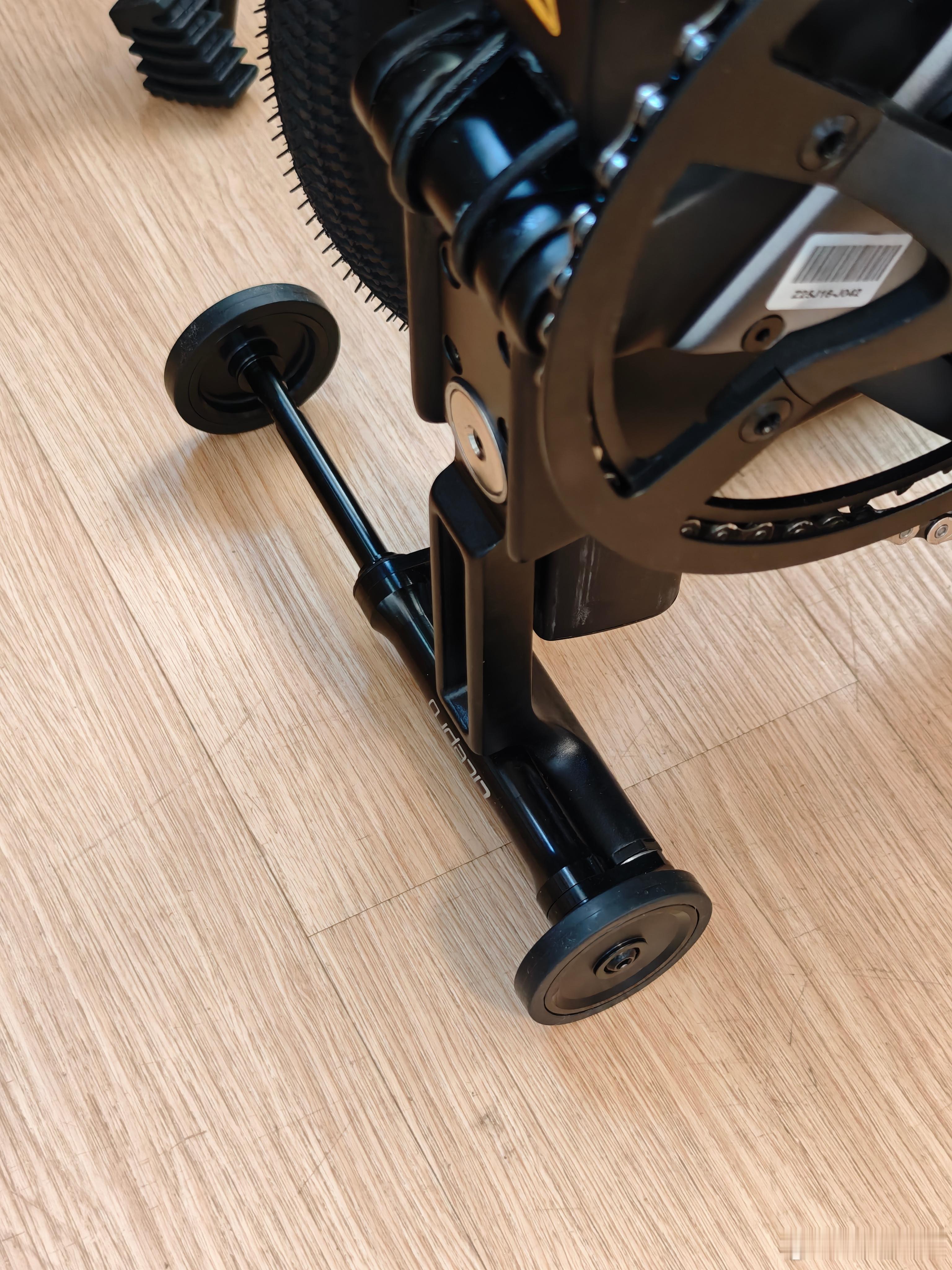 买了一个小布用的易行轮延长杆,一边垫5块垫片就装上去了,现在放着就稳多了。