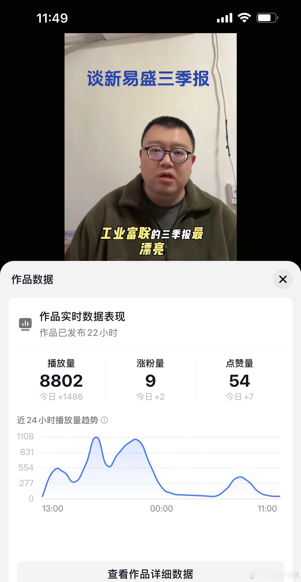 昨天拍的一条抖音,播放量8802。我是新手,对此非常满意。
