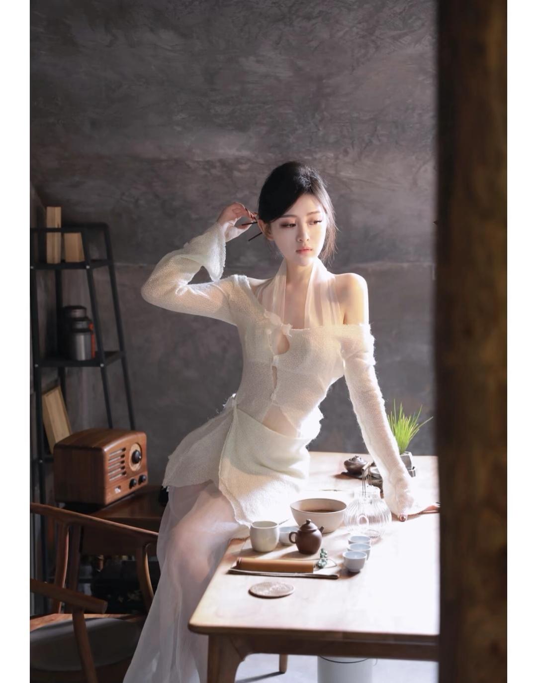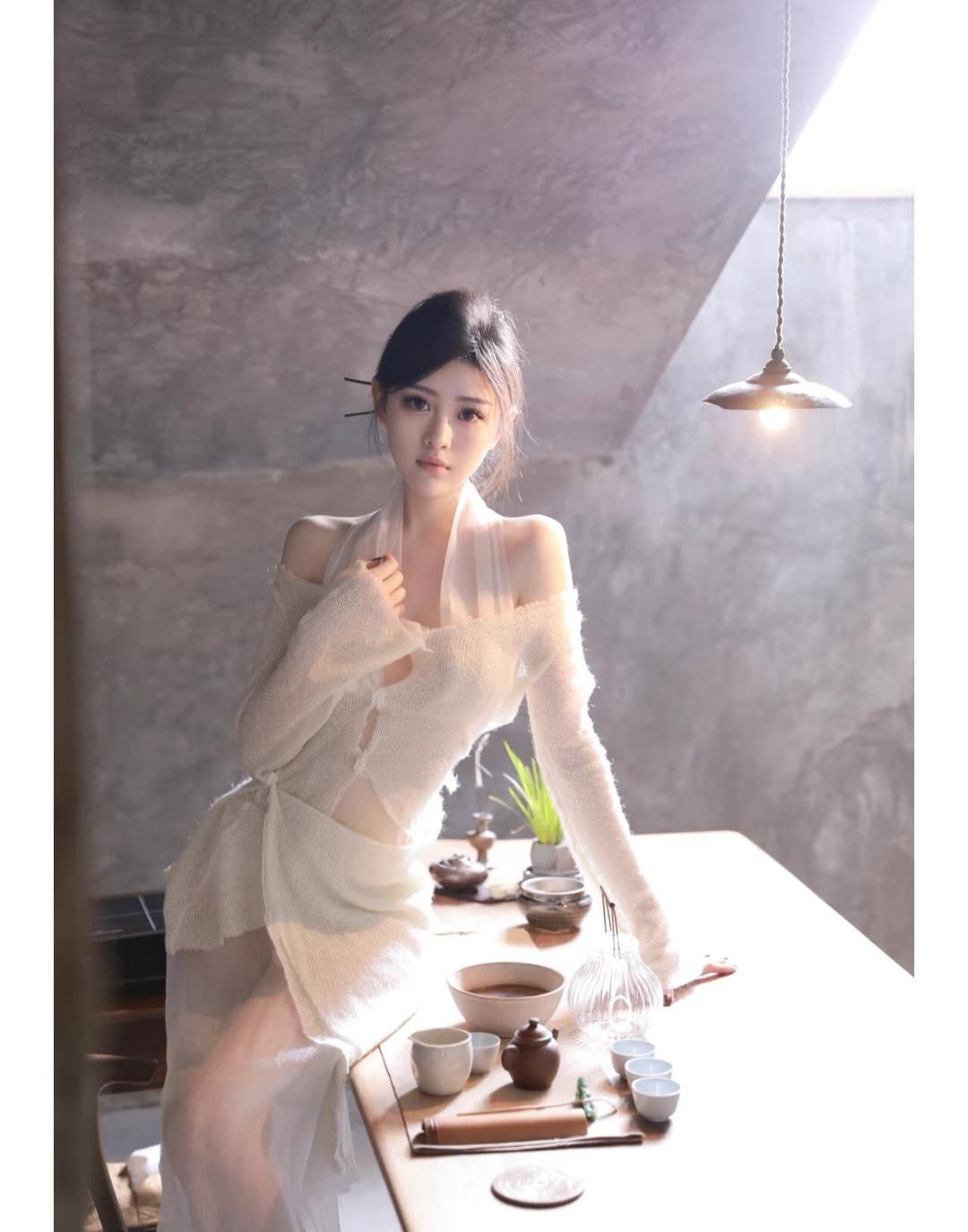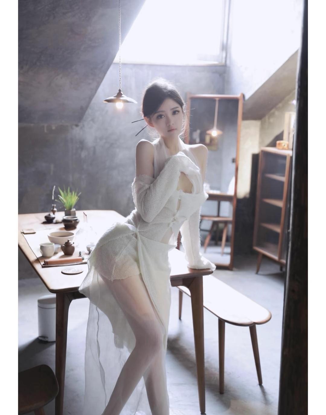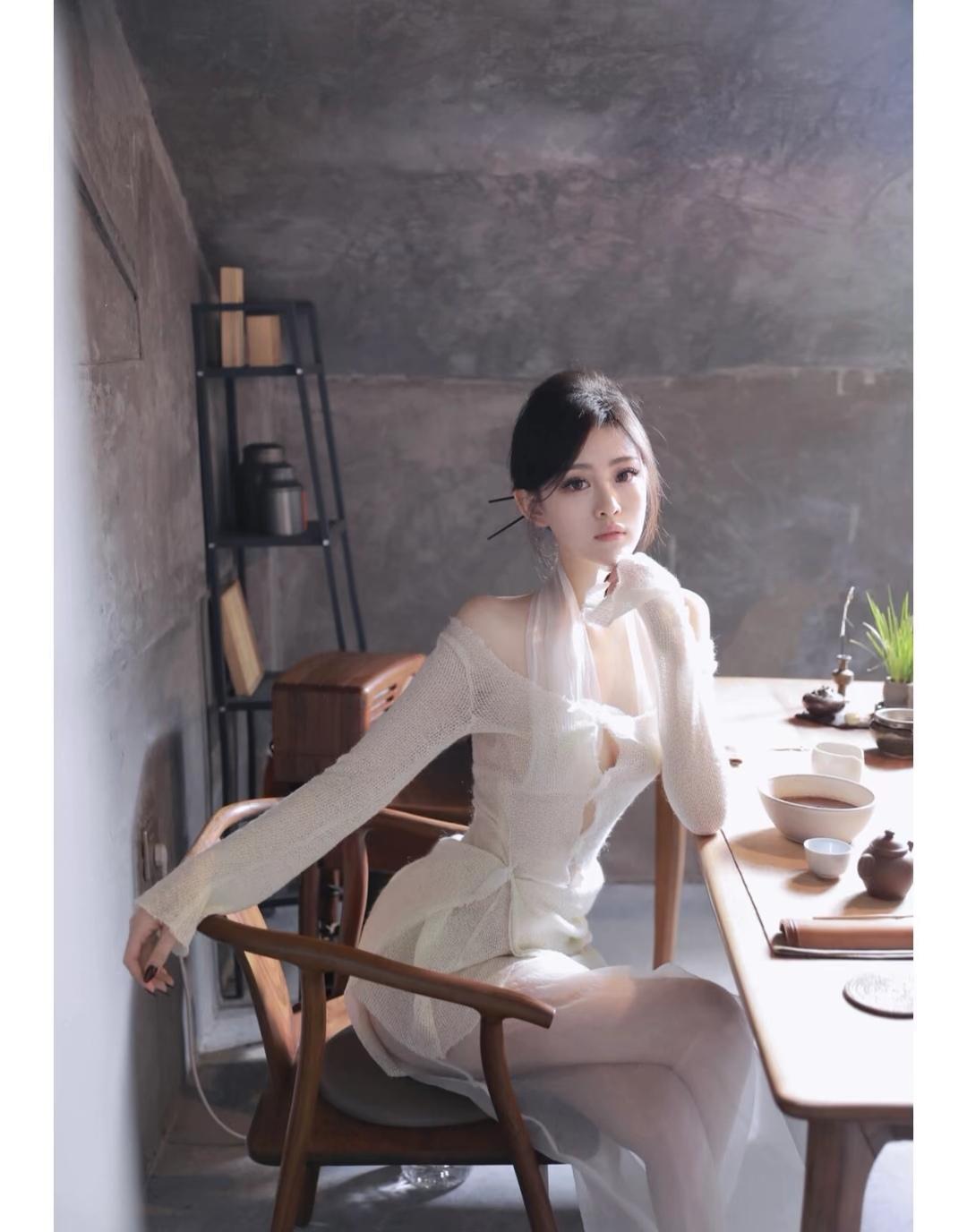 优雅沉思,静享时光,轻纱窗前,悠然自得。